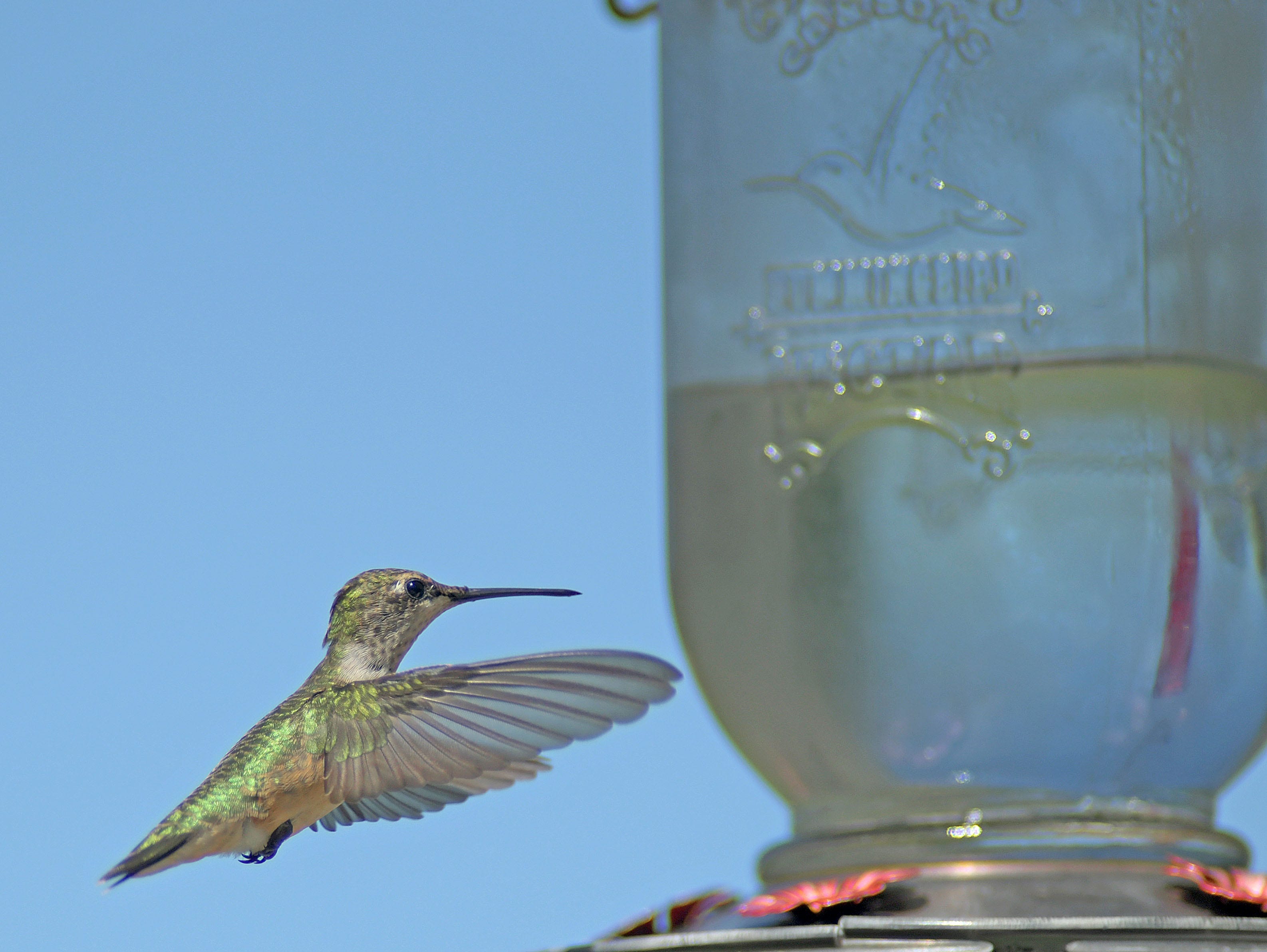 A female Ruby-throated Hummingbird prepares to have lunch at a feeder in Ontario, Ohio on September 5, 2024. The first Saturday in September is celebrated as National Hummingbird Day. (Photo by Jason J. Molyet, News Journal via USA TODAY Network)