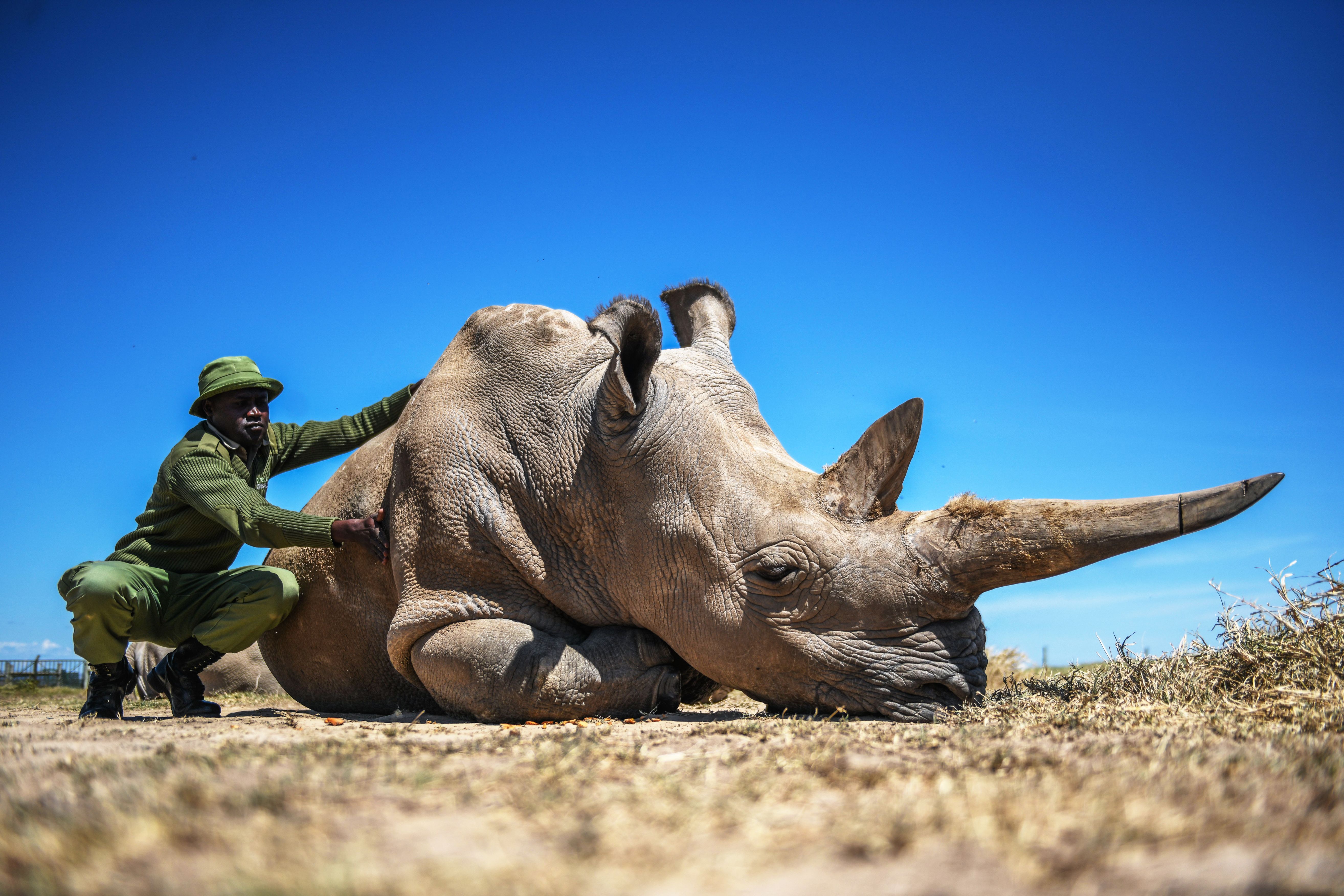 Najin, one of the last two northern white rhinos, is looked after at the Ol Pejeta conservation centre in Laikipia, Kenya on September 07, 2024. The northern white rhinos were once found in Central Africa, but illegal hunting fueled by the demand for rhino horn has decimated their presence in the wild. (Photo by Gerald Anderson/Anadolu via Getty Images)