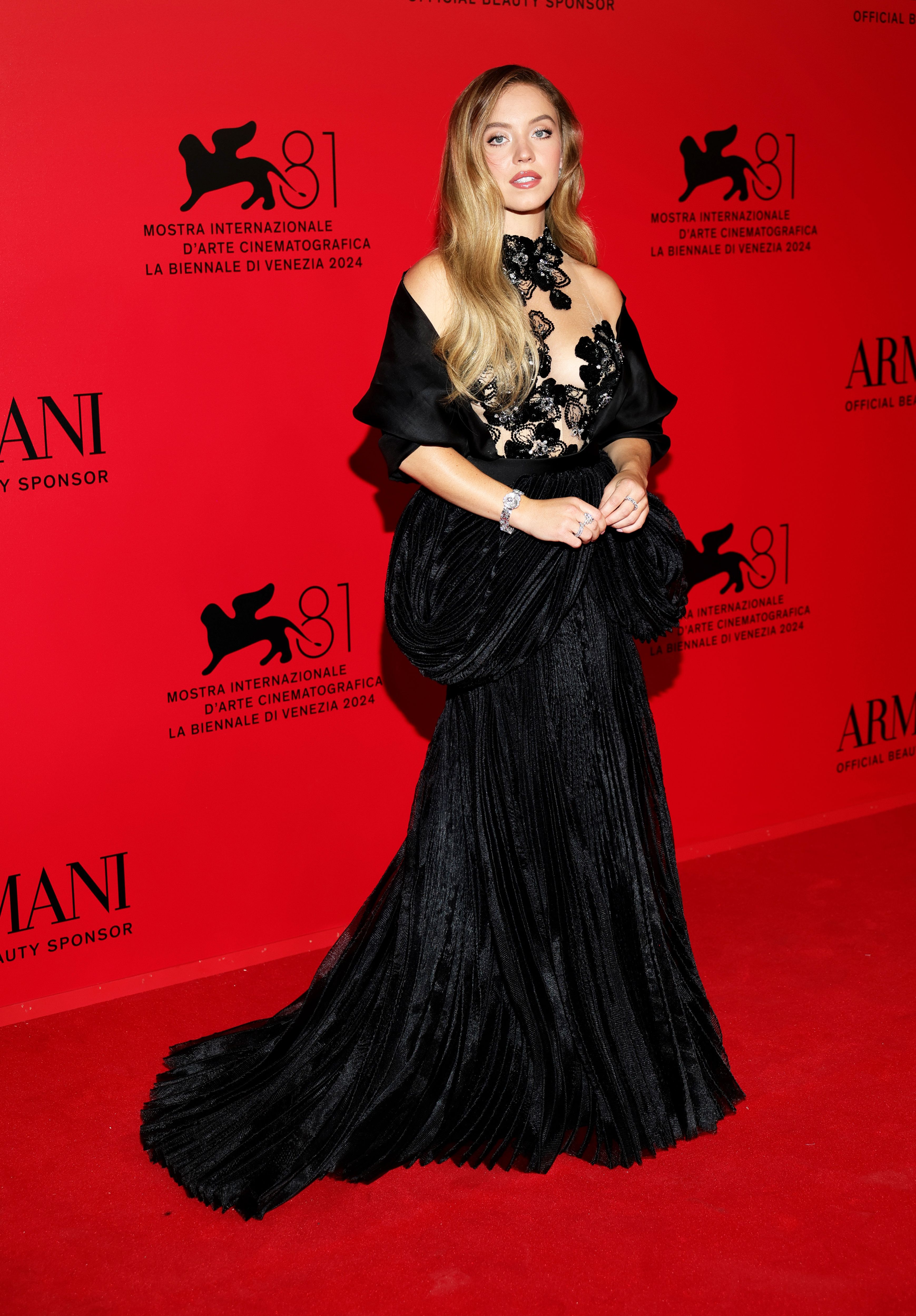 American actress Sydney Sweeney attends the 2024 Armani Beauty dinner photocall at Arsenale on August 31, 2024 in Venice, Italy. (Photo by Andreas Rentz/Getty Images)