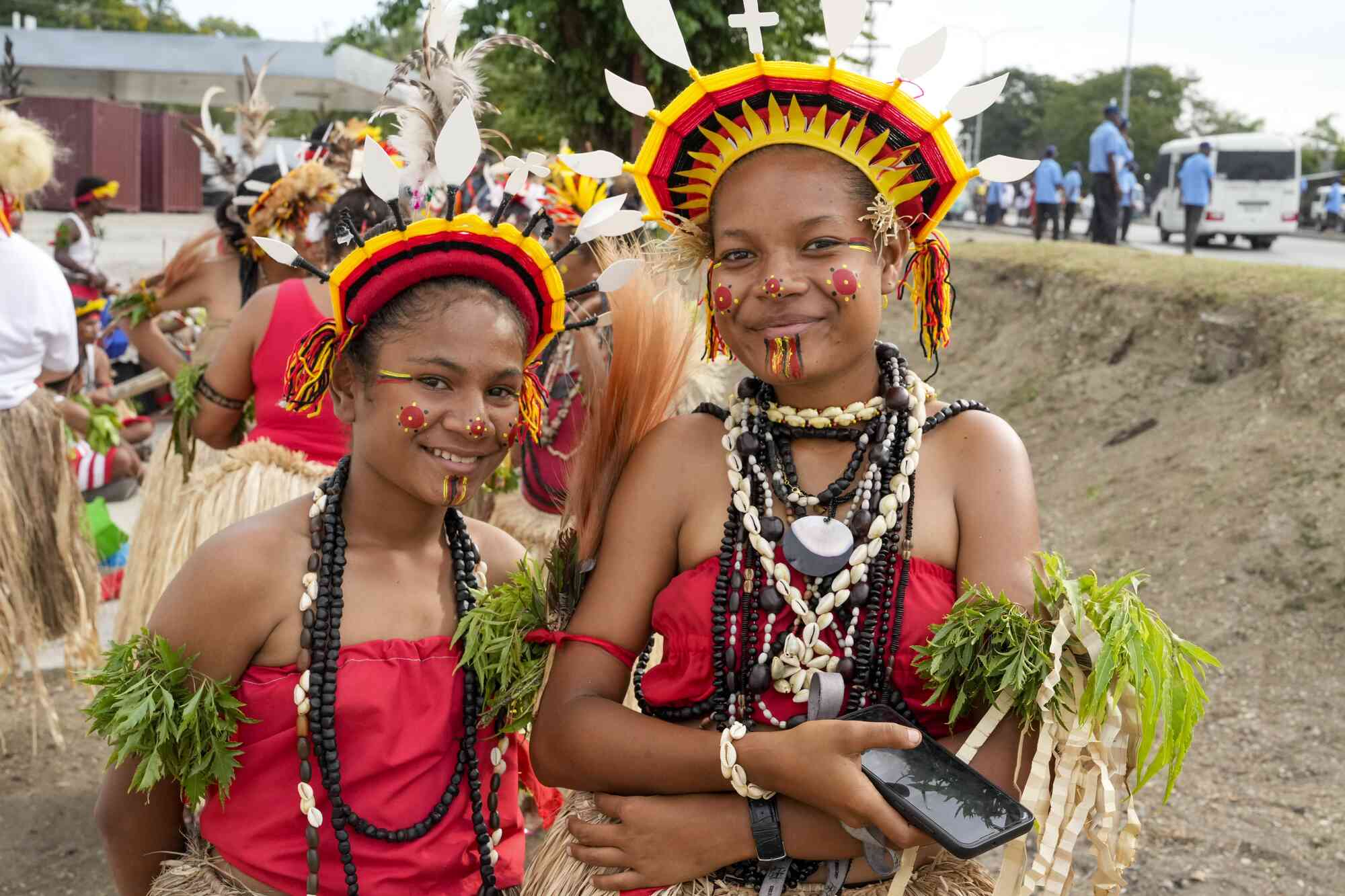 Young traditional Papua New Guinean dancers prepare for the arrival of Pope Francis at Jackson's International Airport in Port Moresby, Papua New Guinea, Friday, September 6, 2024. (Photo by Mark Baker/AP Photo)