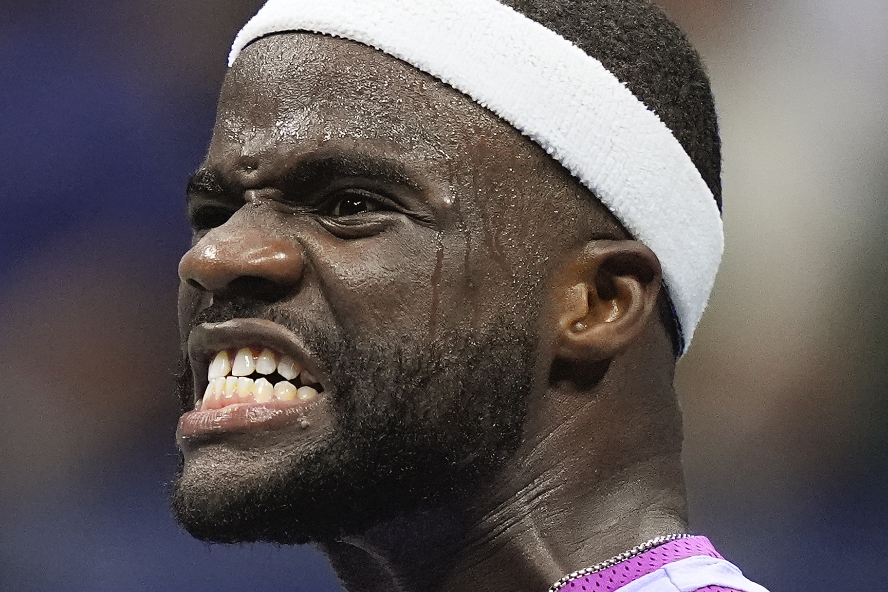 Frances Tiafoe, of the United States, reacts after scoring a point against Taylor Fritz, of the United States, during the men's singles semifinal of the U.S. Open tennis championships, Friday, September 6, 2024, in New York. (Photo by Frank Franklin II/AP Photo)