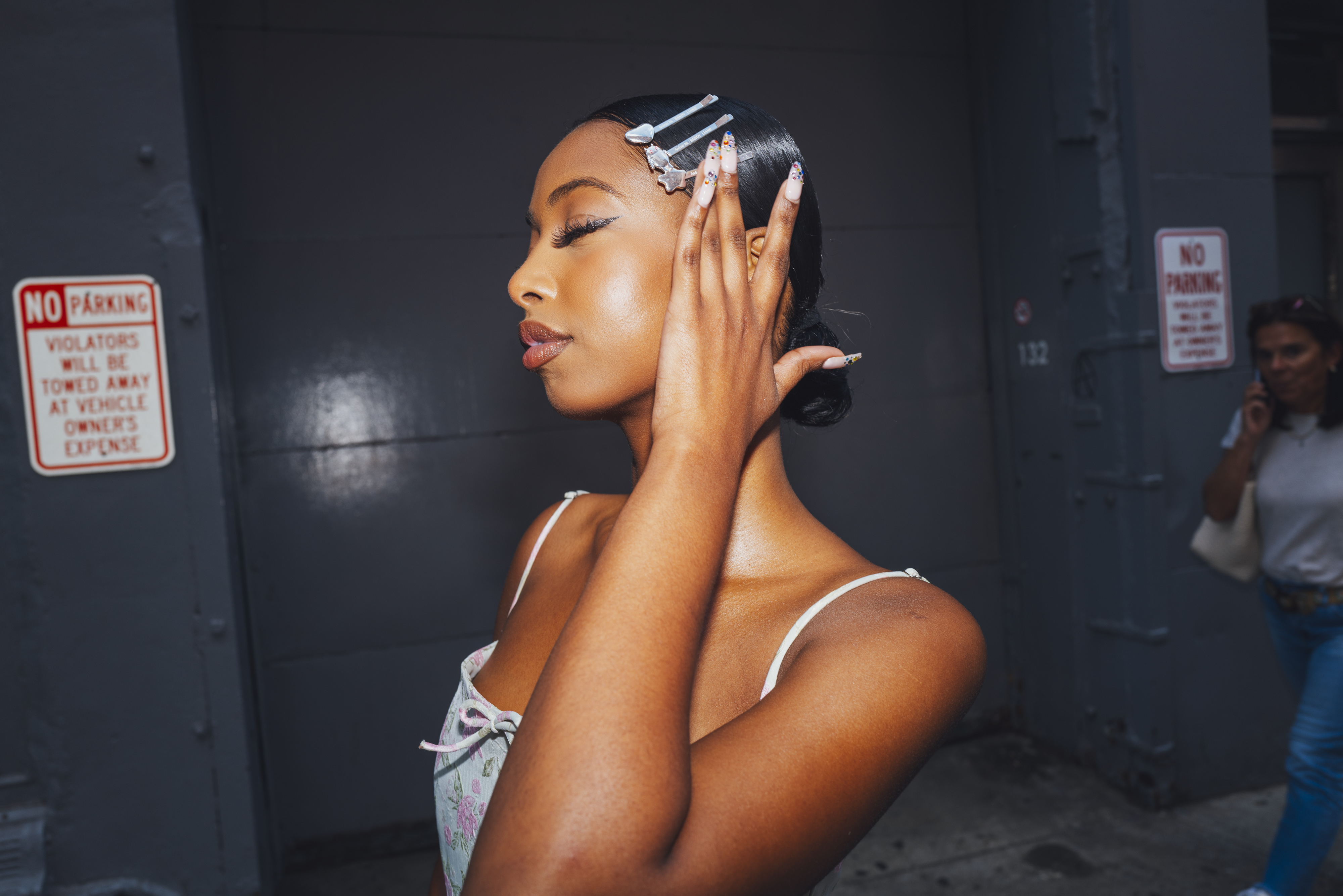 Samira Ahmed wears Sandy from head to toe for the Sandy Liang show during New York Fashion Week (NYFW) in New York, New York on September 8, 2024. (Photo by Sara Konradi for The Washington Post)