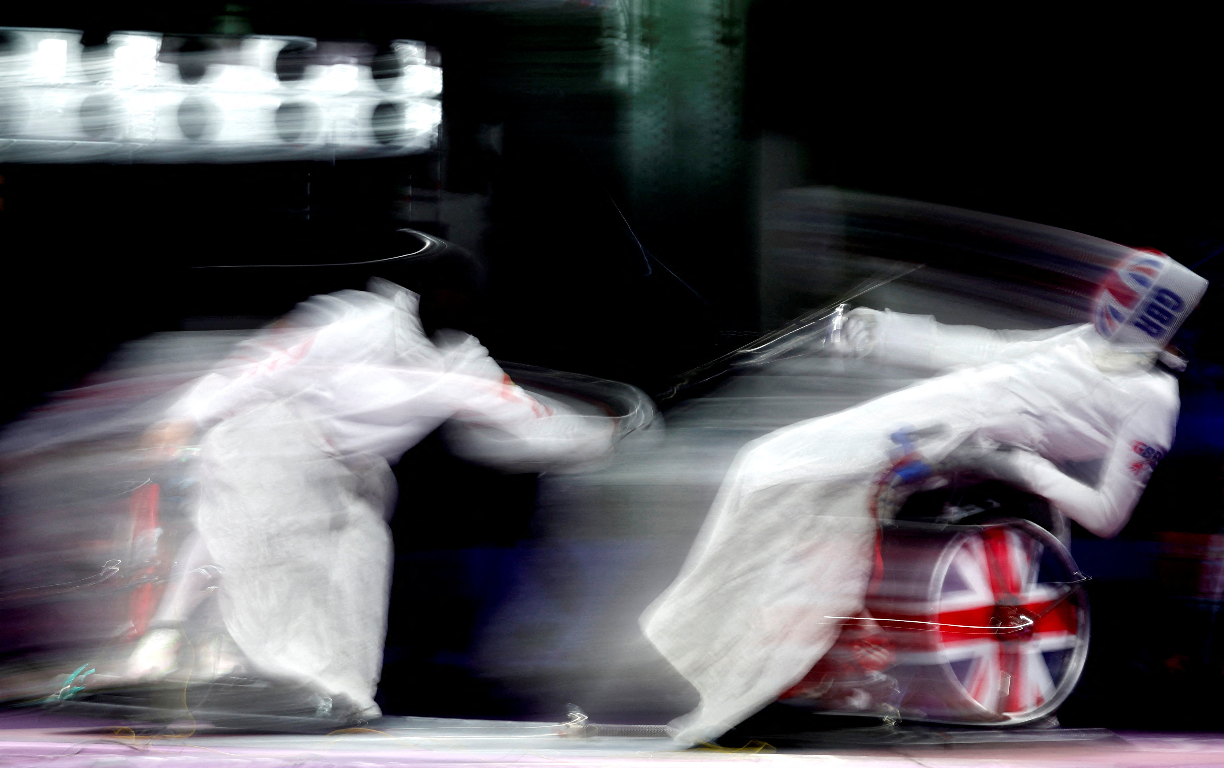 Gang Sun of China in action with Piers Gilliver of Britain during the gold medal bout in wheelchair fencing men's epee Category A on September 6, 2024. (Photo by Gonzalo Fuentes/Reuters)