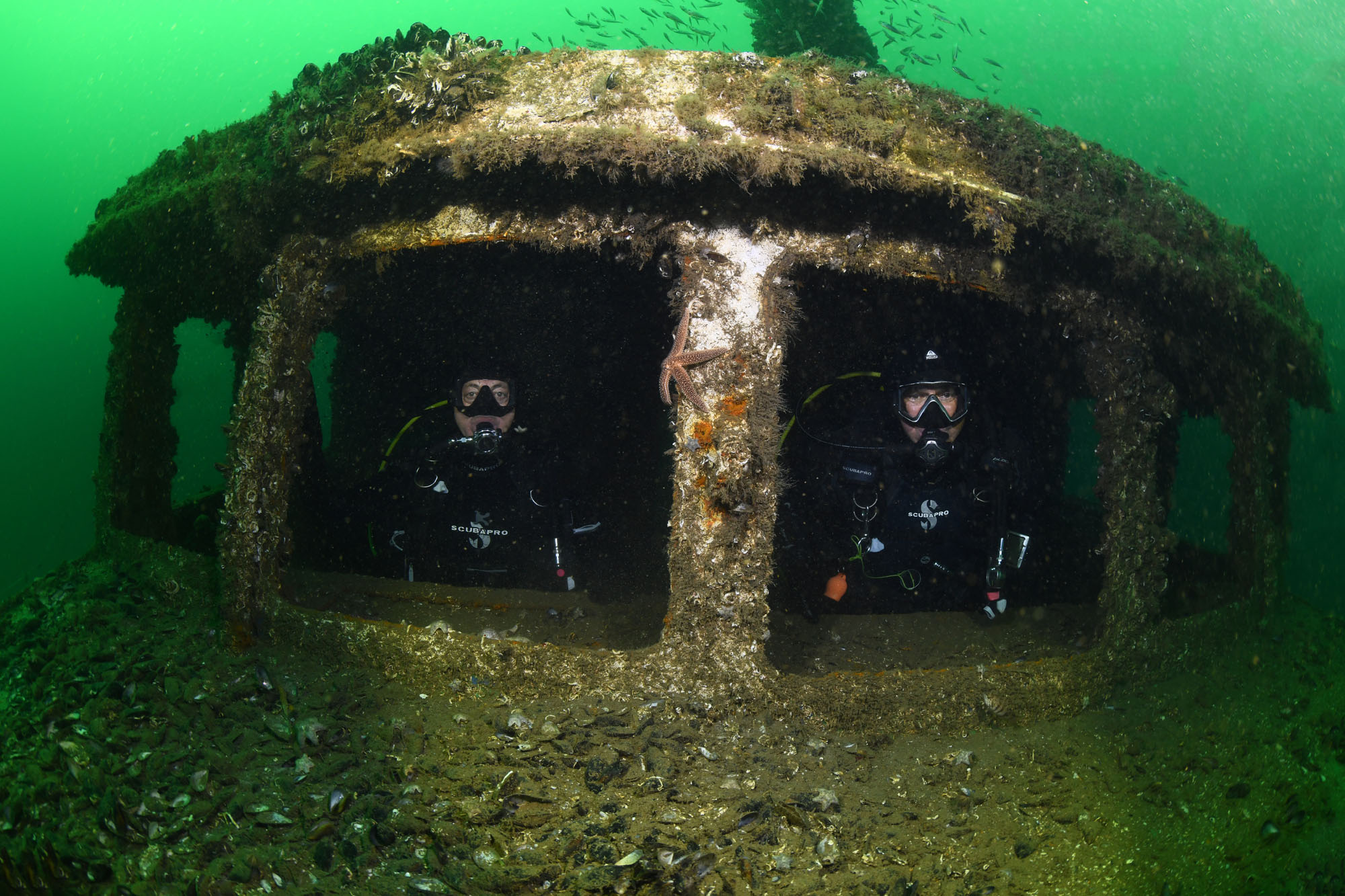 Divers discover the ferry, which was sunk 180 meters off the shore in 2013 in Karamursel district after being used for passenger transportation in the city lines for many years and which is home to many living species, including soft coral at a depth of 23 meters, pina, which is under the danger of extinction, and mackerel identical to the Marmara Sea in Kocaeli, Turkiye on August 22, 2024. The project is conducted in cooperation with Kocaeli Metropolitan Municipality, Karamursel Municipality and Karamursel Underwater Sports Association (KARSAD). (Photo by Tahsin Ceylan/Anadolu via Getty Images)