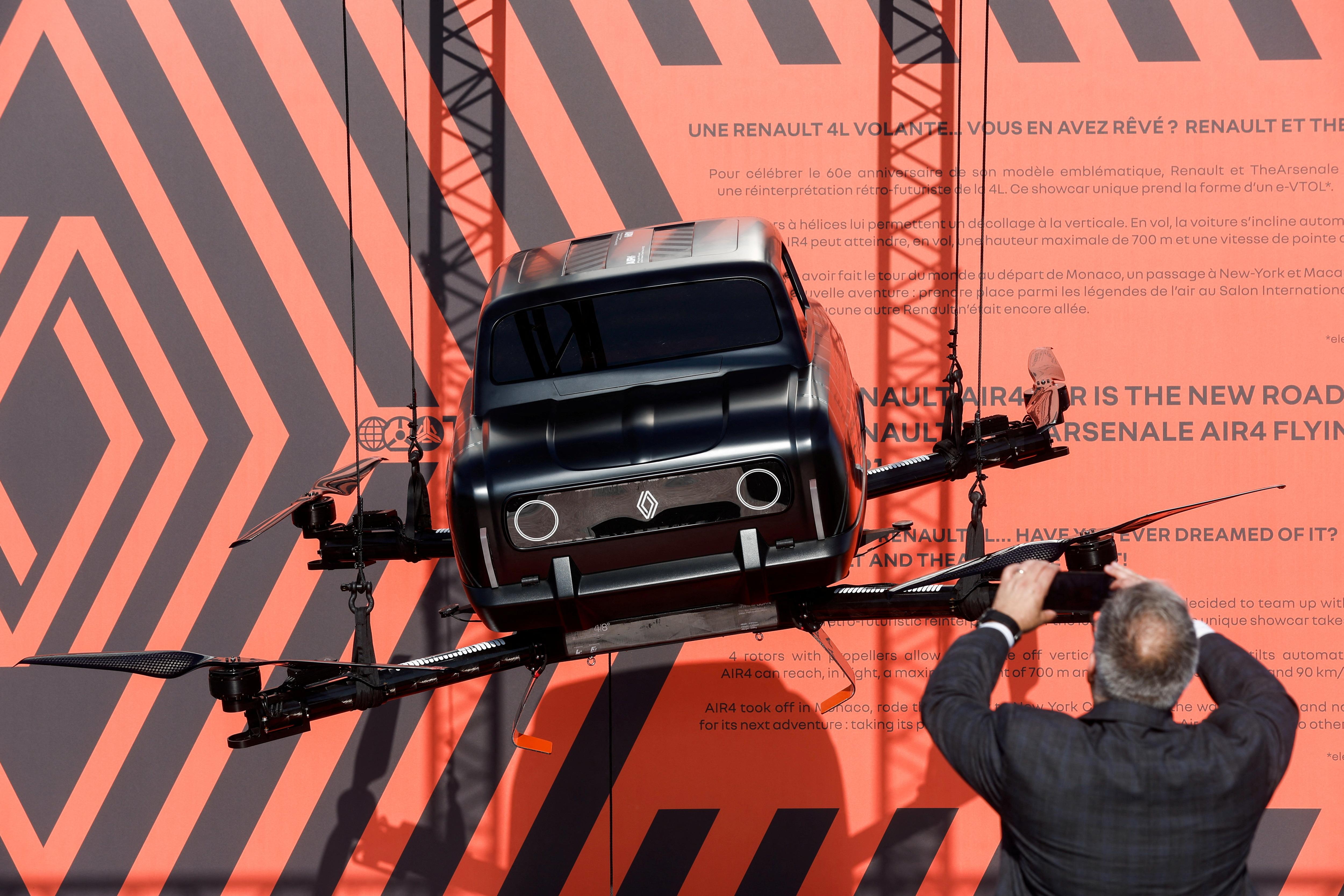 A Renault AIR4 flying car concept is displayed at the 54th International Paris Airshow at Le Bourget Airport near Paris, France on June 21, 2023. (Photo by Benoit Tessier/Reuters)