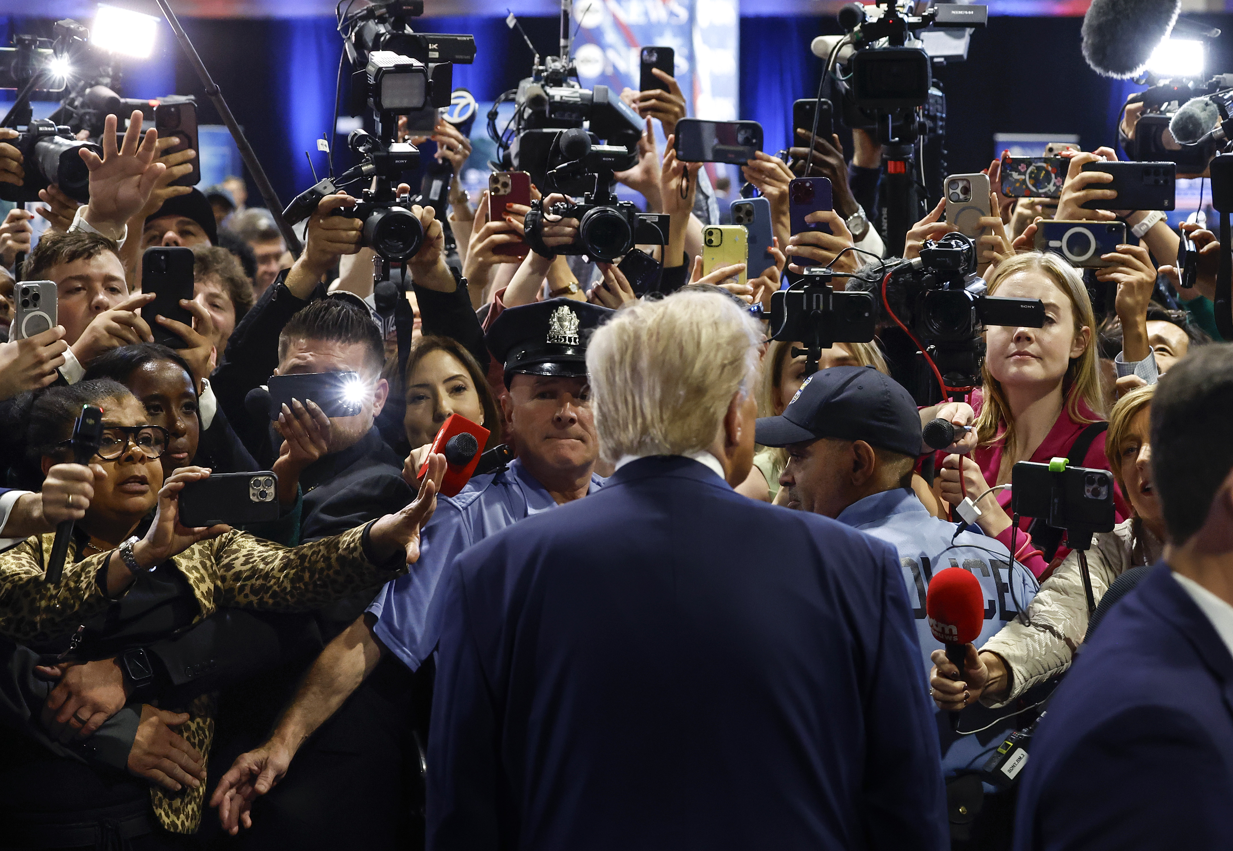 Republican presidential nominee, former U.S. President Donald Trump speaks to reporters in the spin room after debating Democratic presidential nominee, U.S. Vice President Kamala Harris, at Pennsylvania Convention Center on September 10, 2024 in Philadelphia, Pennsylvania. After earning the Democratic Party nomination following President Joe Biden's decision to leave the race, Harris faced off with Trump in what may be the only debate of the 2024 race for the White House. (Photo by Kevin Dietsch/Getty Images)