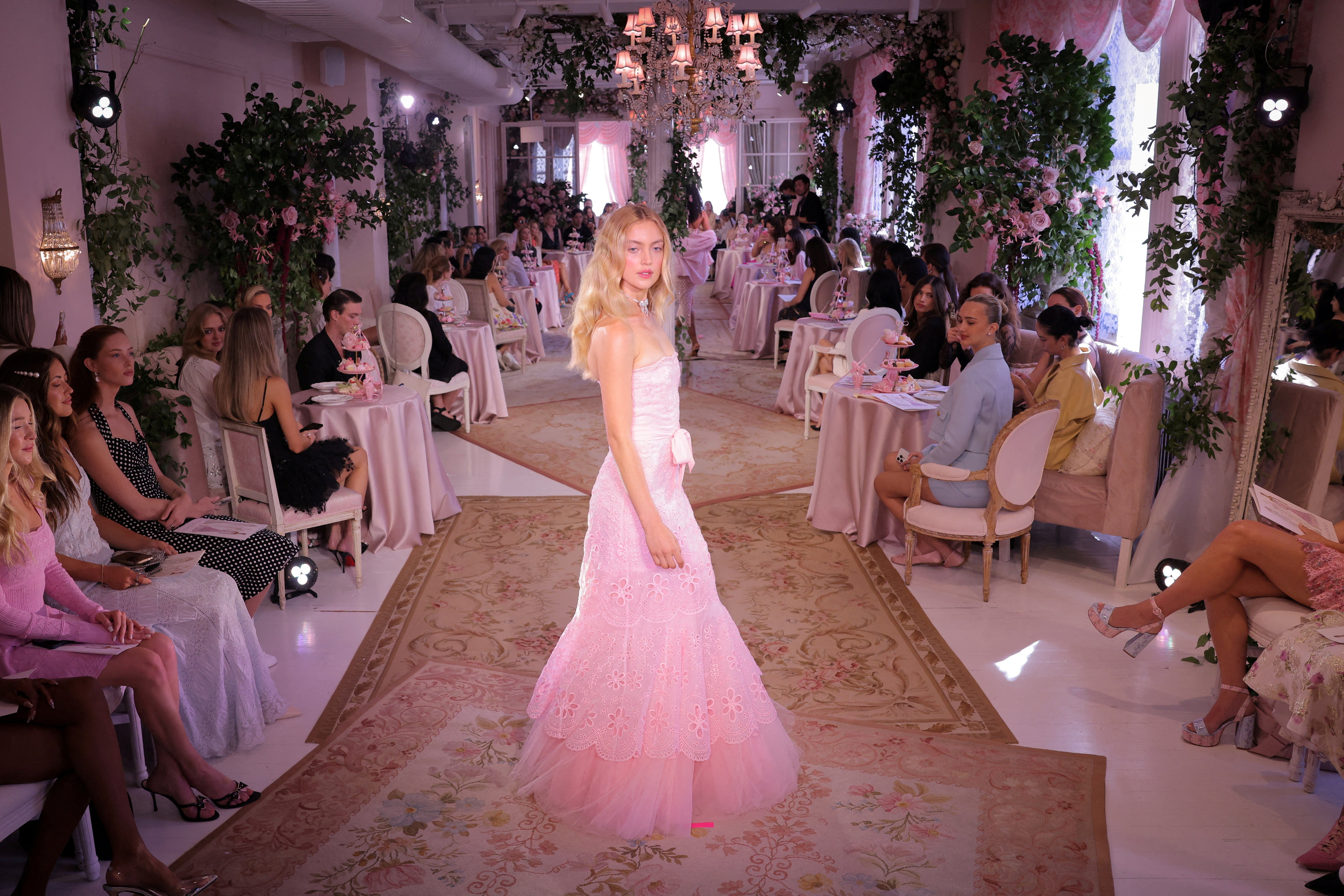 A model presents a creation from the LoveShackFancy Spring/Summer 2025 collection during the New York Fashion Week in New York City, U.S., September 10, 2024. (Photo by Andrew Kelly/Reuters)