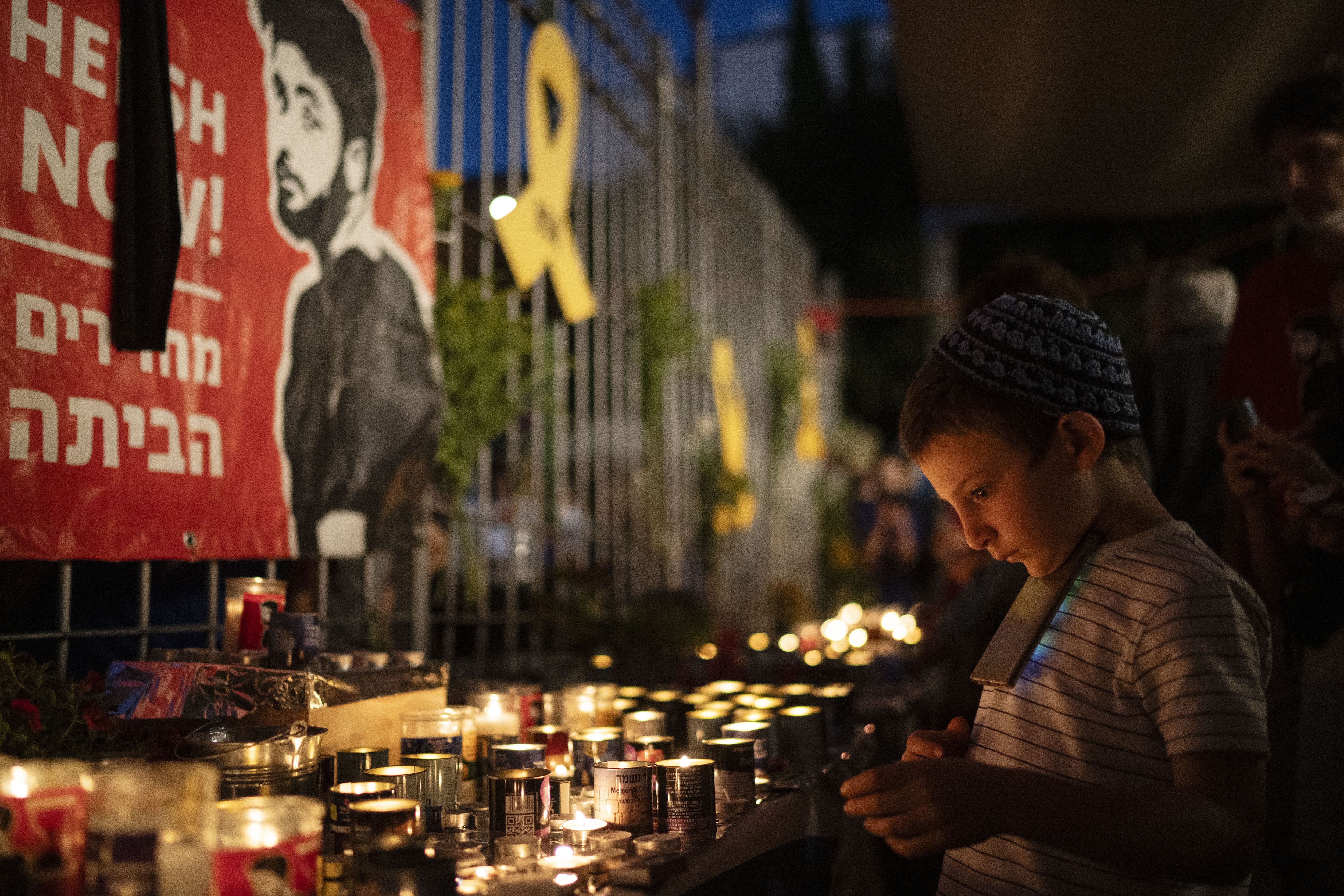 People light candles during a vigil in memory of slain hostage Hersh Goldberg-Polin in Jerusalem, Israel, Sunday, September 1, 2024. (Photo by Leo Correa/AP Photo)