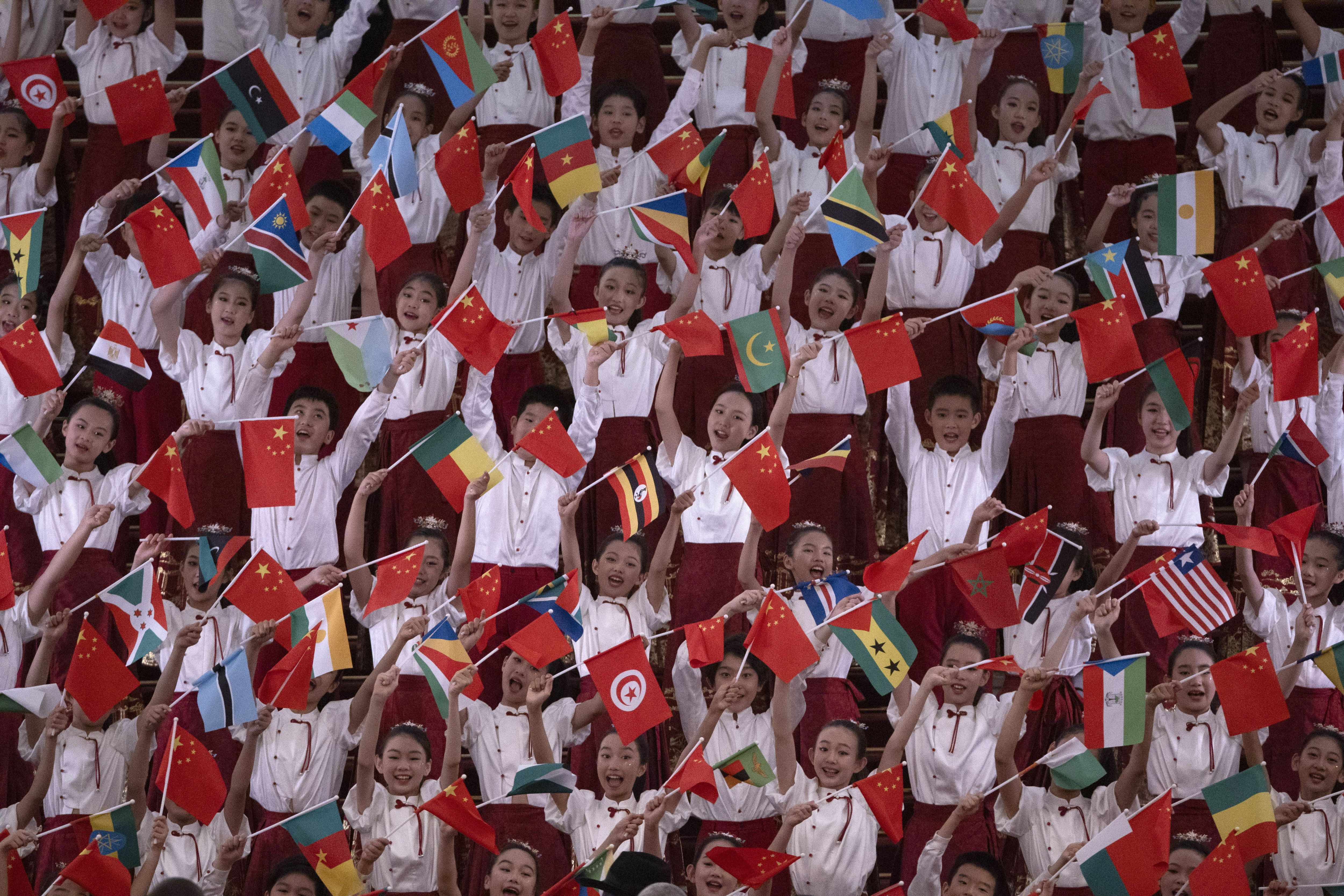 A group of children hold African and Chinese flags perform during a reception at the Forum on China-Africa Cooperation (FOCAC) in the Great Hall of the People in Beijing, China, 04 September 2024. (Photo by Andres Martinez Casares/EPA)