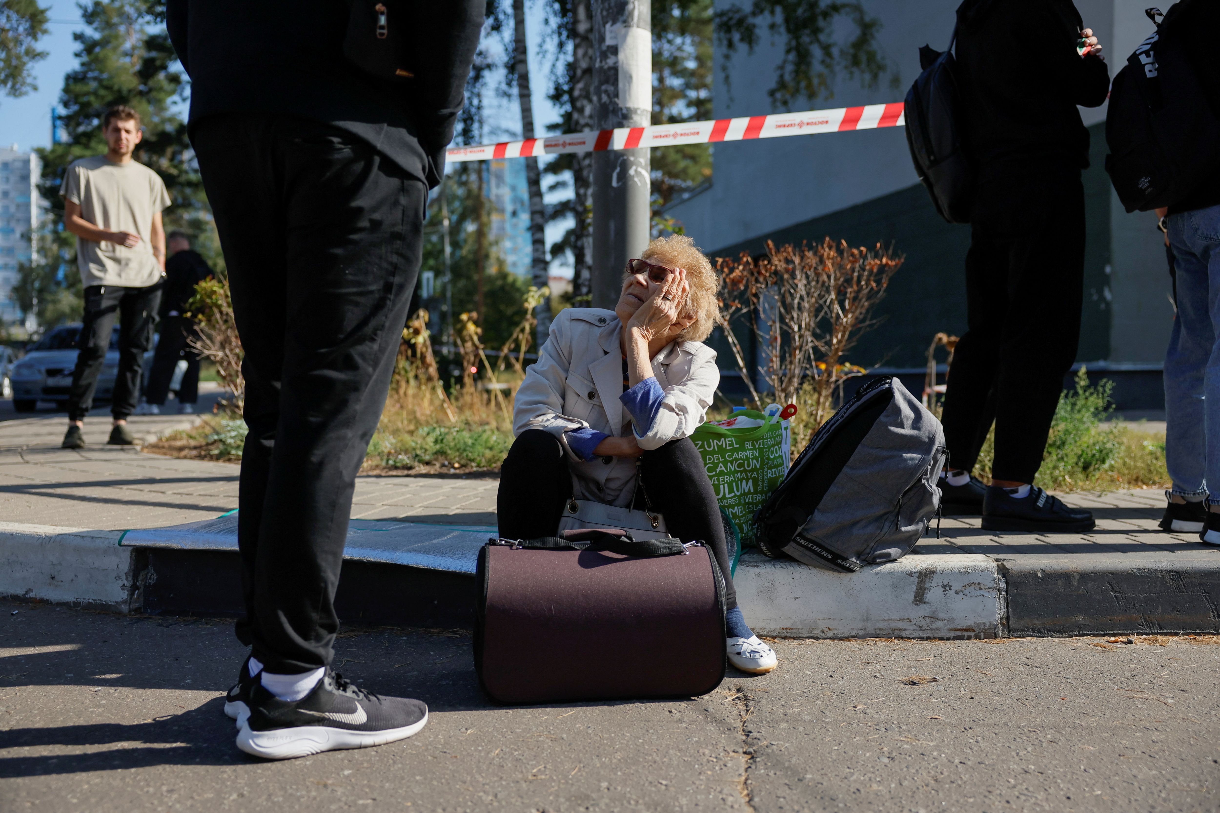 Local residents gather outside a damaged multi-storey building following an alleged Ukrainian drone attack, in Ramenskoye in the Moscow region, Russia on September 10, 2024. (Photo by Maxim Shemetov/Reuters)
