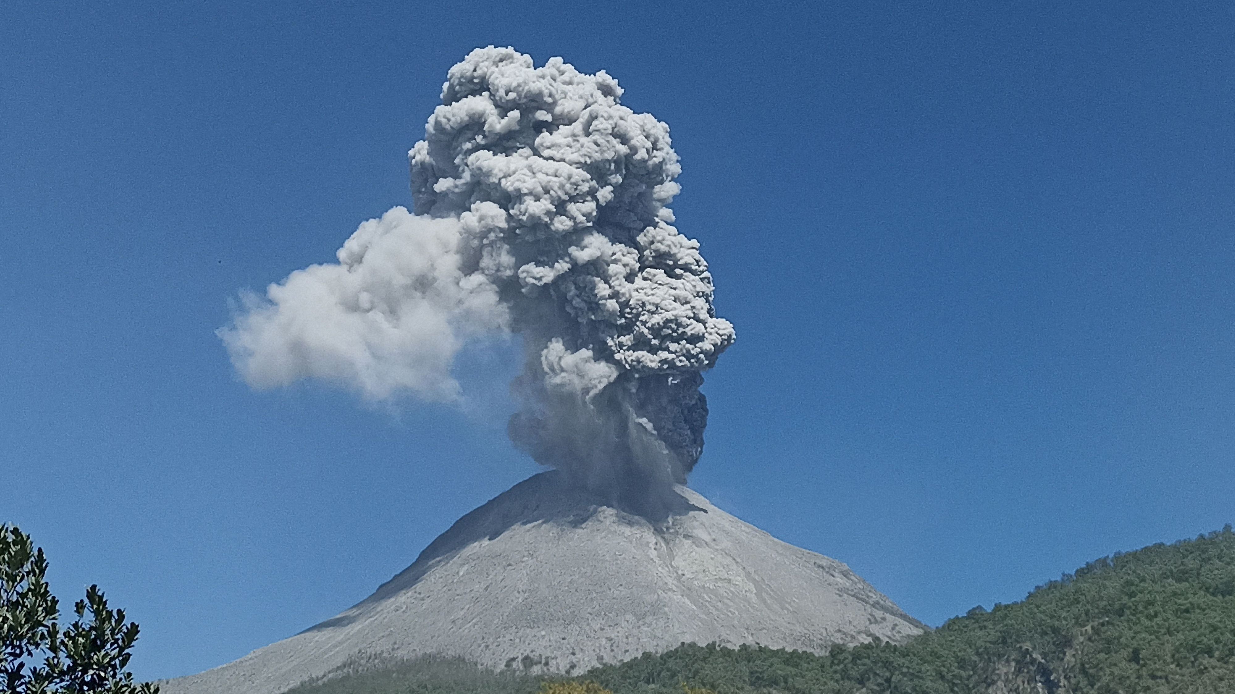 Mount Lewotobi Laki-laki spews volcanic ash during an eruption as seen from Boru village in East Flores, East Nusa Tenggara, on July 14, 2024. (Photo by Arnold Welianto/AFP Photo)