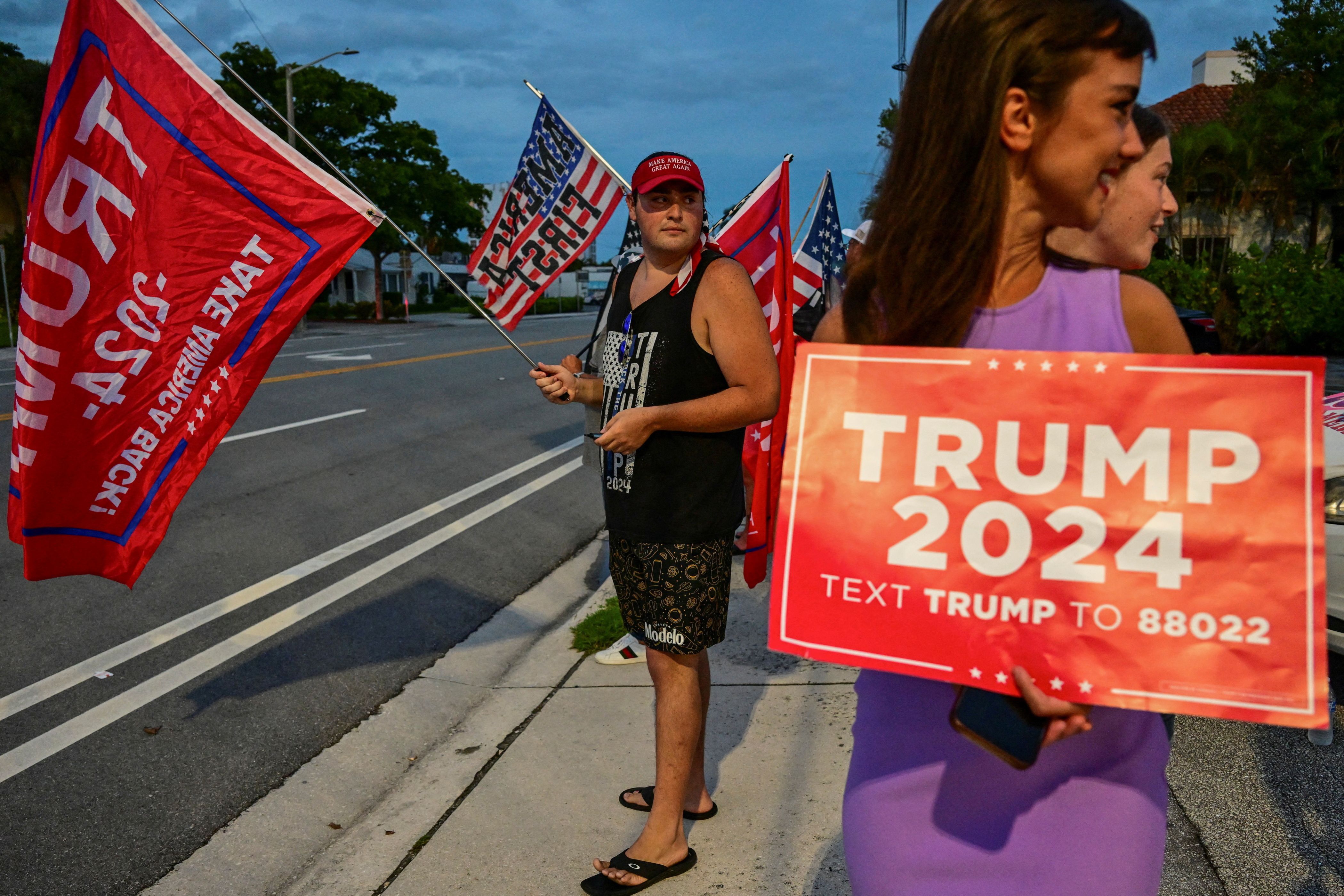 Supporters of Republican presidential nominee and former U.S. President Donald Trump gather around Mar-A-Lago, after he returned from Trump International Golf Club, which was the site of a shooting, to his residence at Mar-A-Lago, in Palm Beach, Florida, U.S. September 15, 2024. (Photo by Giorgio Viera/Reuters)