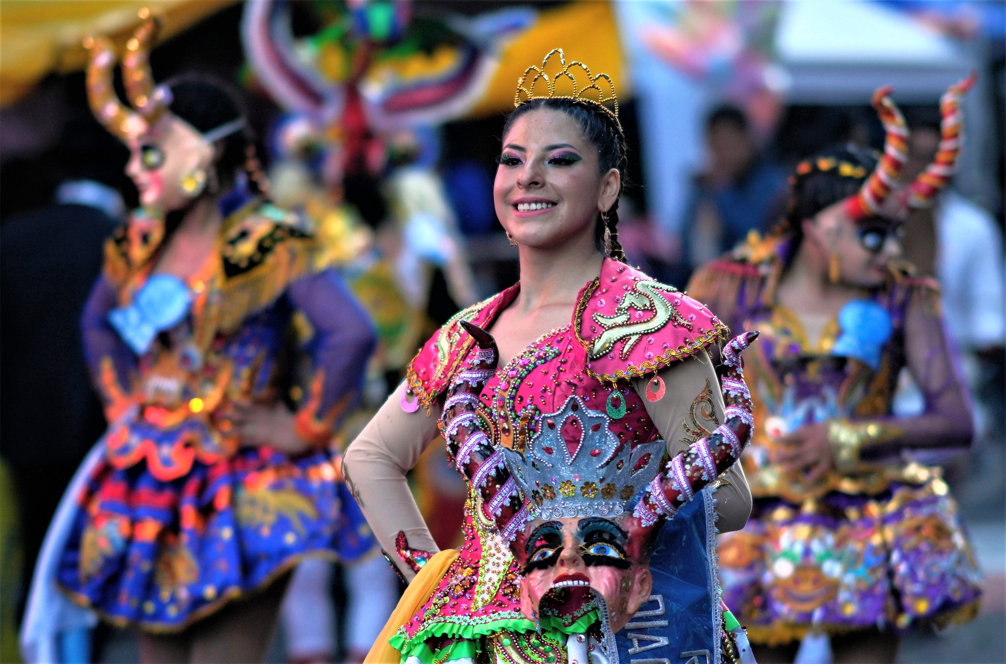 A dancer performs the “Diablada” during an annual parade in honor of “Jesus del Gran Poder”, or “The Lord of Great Power” in La Paz, Bolivia, Saturday, June 3, 2023. Thousands of dancers, musicians and faithful gather every year for the festival to show their devotion and gratitude. (Photo by Juan Karita/AP Photo)