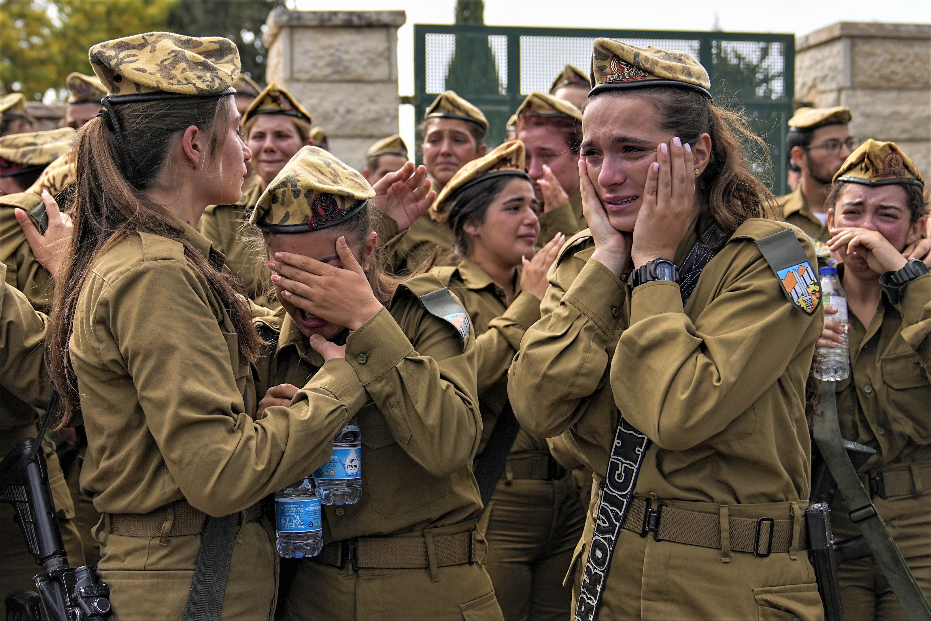 Israeli soldiers mourn during the funeral of Sgt. Lia Ben Nun, 19, in Rishon Lezion, Israel, Sunday, June 4, 2023. The Israeli army says Ben Nun was among three soldiers who were killed by an Egyptian border guard who crossed into Israel on Saturday before he was fatally shot by troops. (Photo by Ohad Zwigenberg/AP Photo)