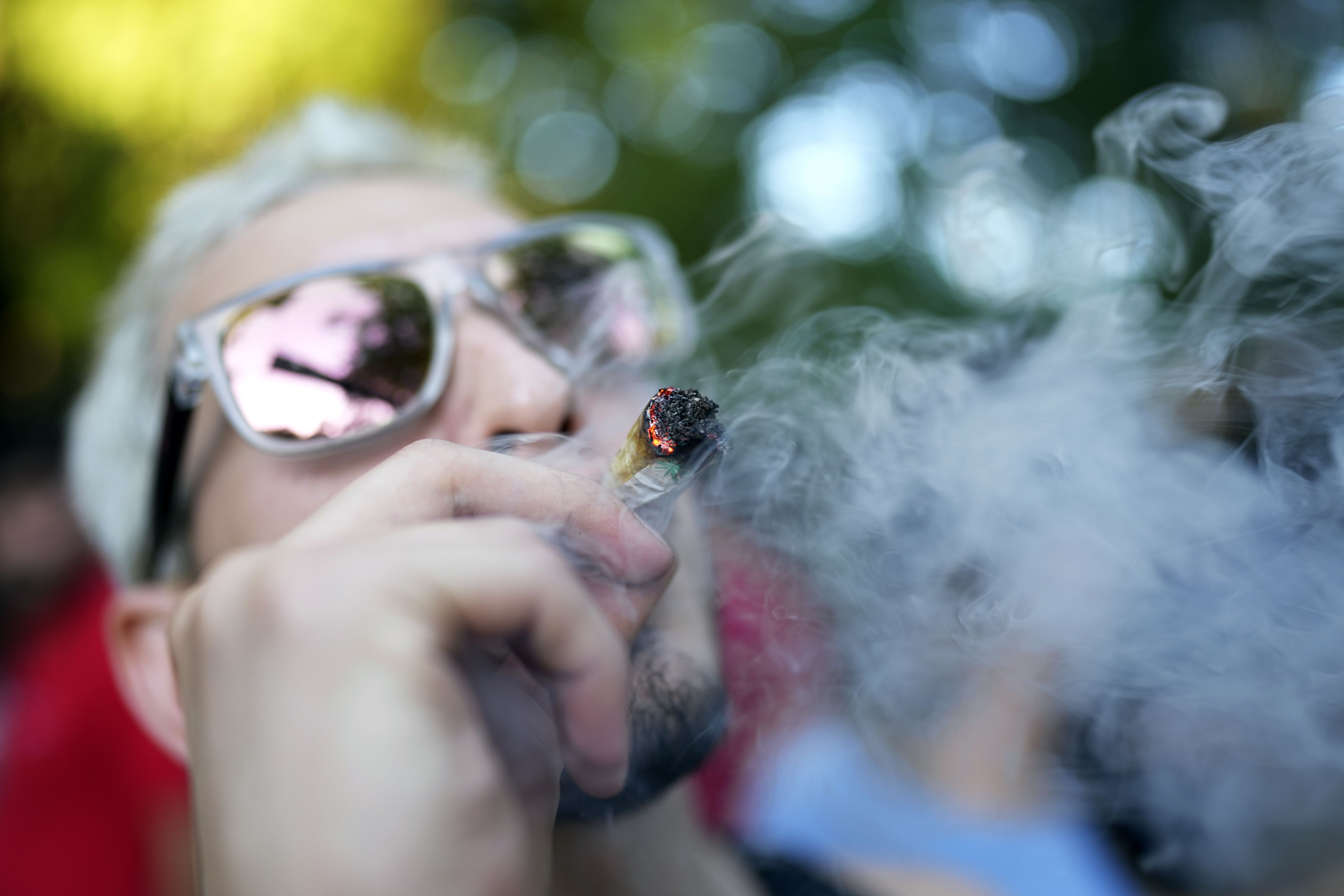 A youth smokes marijuana during the Open Plaza festival organized by the Granjamadre marijuana farm, in Asuncion, Paraguay, Sunday, June 4, 2023. (Photo by Jorge Saenz/AP Photo)