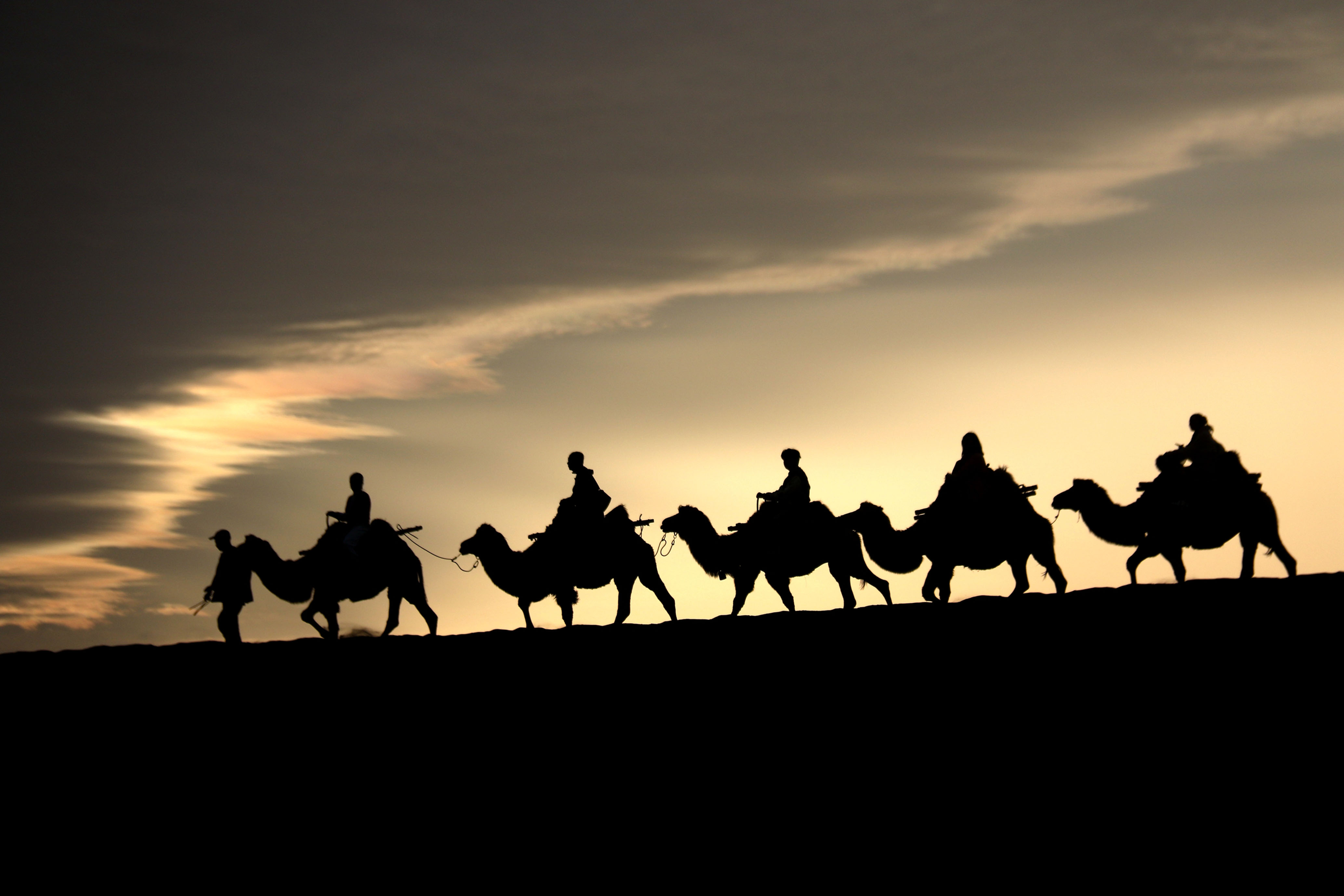 Camel-riding visitors enjoy the sights at the Mingsha Mountain and Crescent Spring scenic spot in the city of Dunhuang, northwest China's Gansu Province, on September 1, 2024. (Photo by Zhang Xiaoliang/Xinhua News Agency)