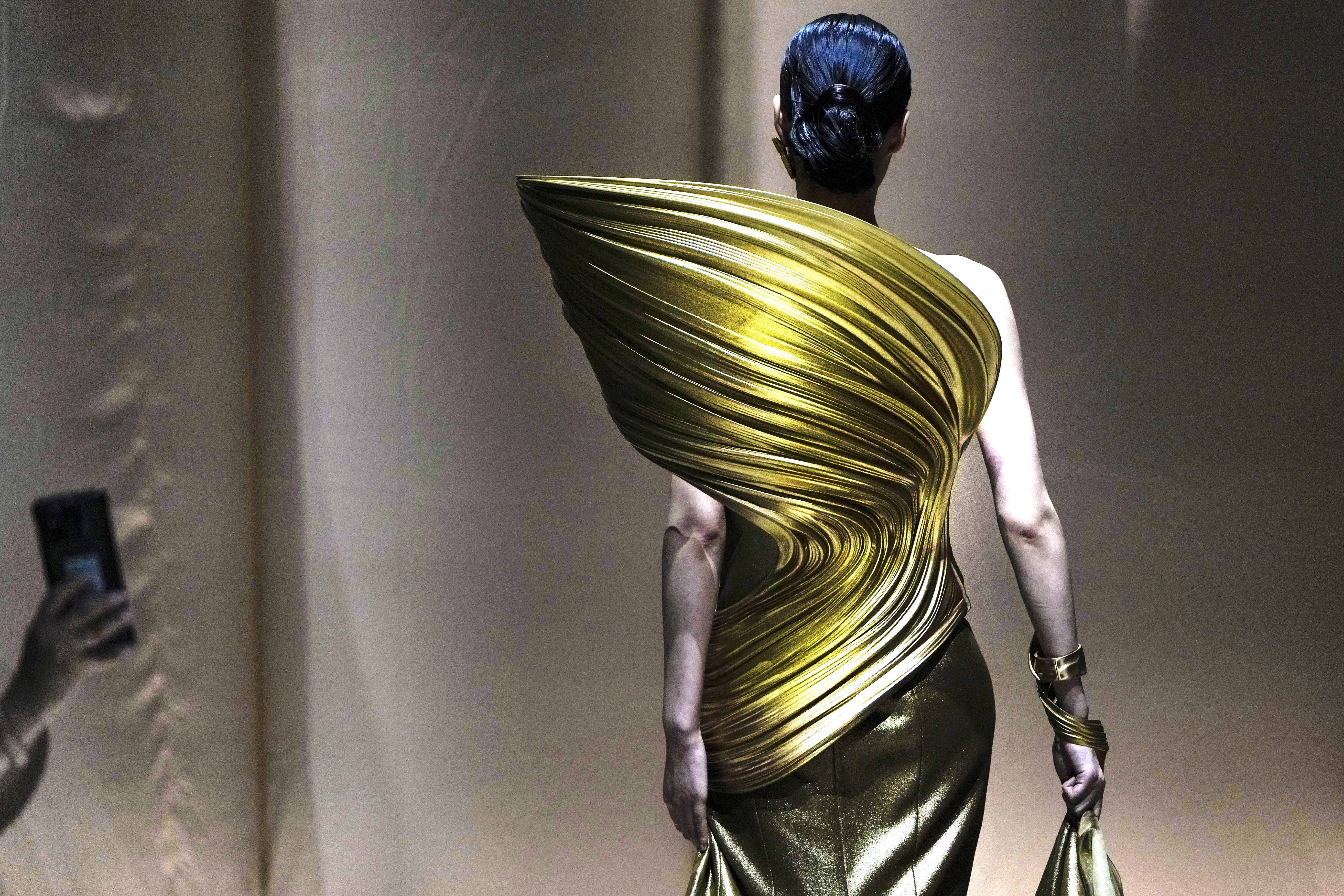 A model showcases a creation by Misuity during the China Fashion Week Opening Show in Beijing, Tuesday, September 3, 2024. (Photo by Andy Wong/AP Photo)