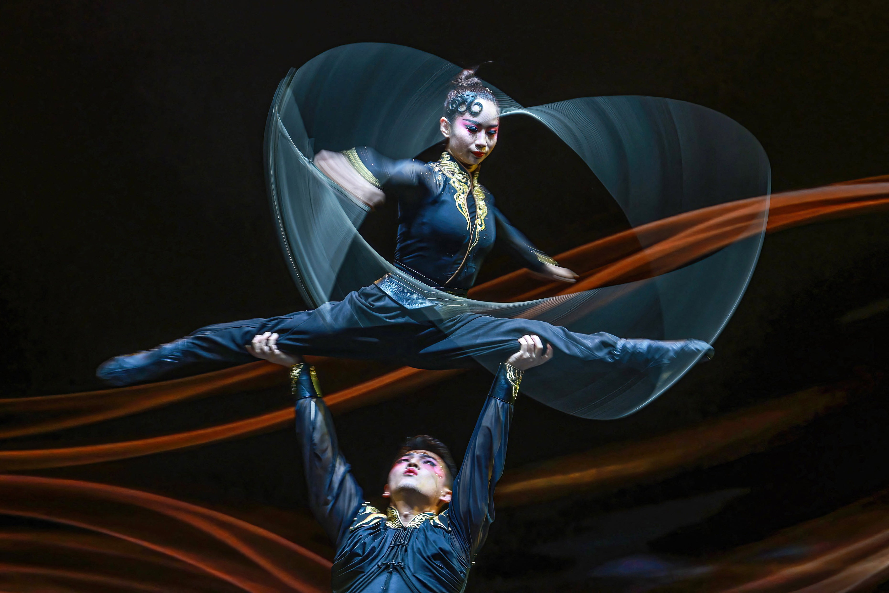 The photo taken on September 5, 2024 shows acrobats performing during a show at a theater in Shenyang, in northeastern China's Liaoning province. (Photo by AFP Photo/China Stringer Network)