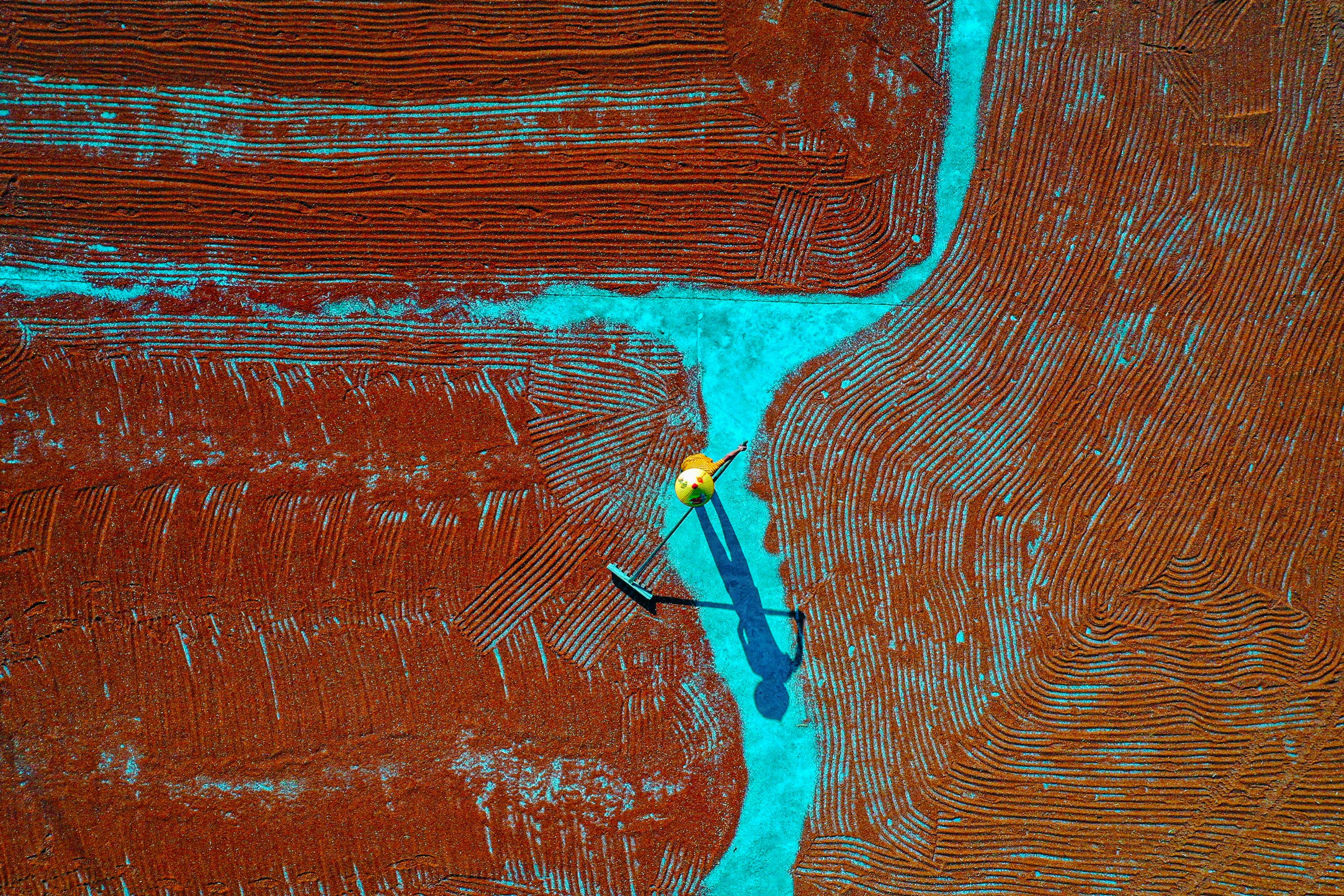 The photo taken on September 9, 2024 shows a villager drying sorghum at a village in southwestern China's Chongqing municipality. (Photo by AFP Photo/China Stringer Network)
