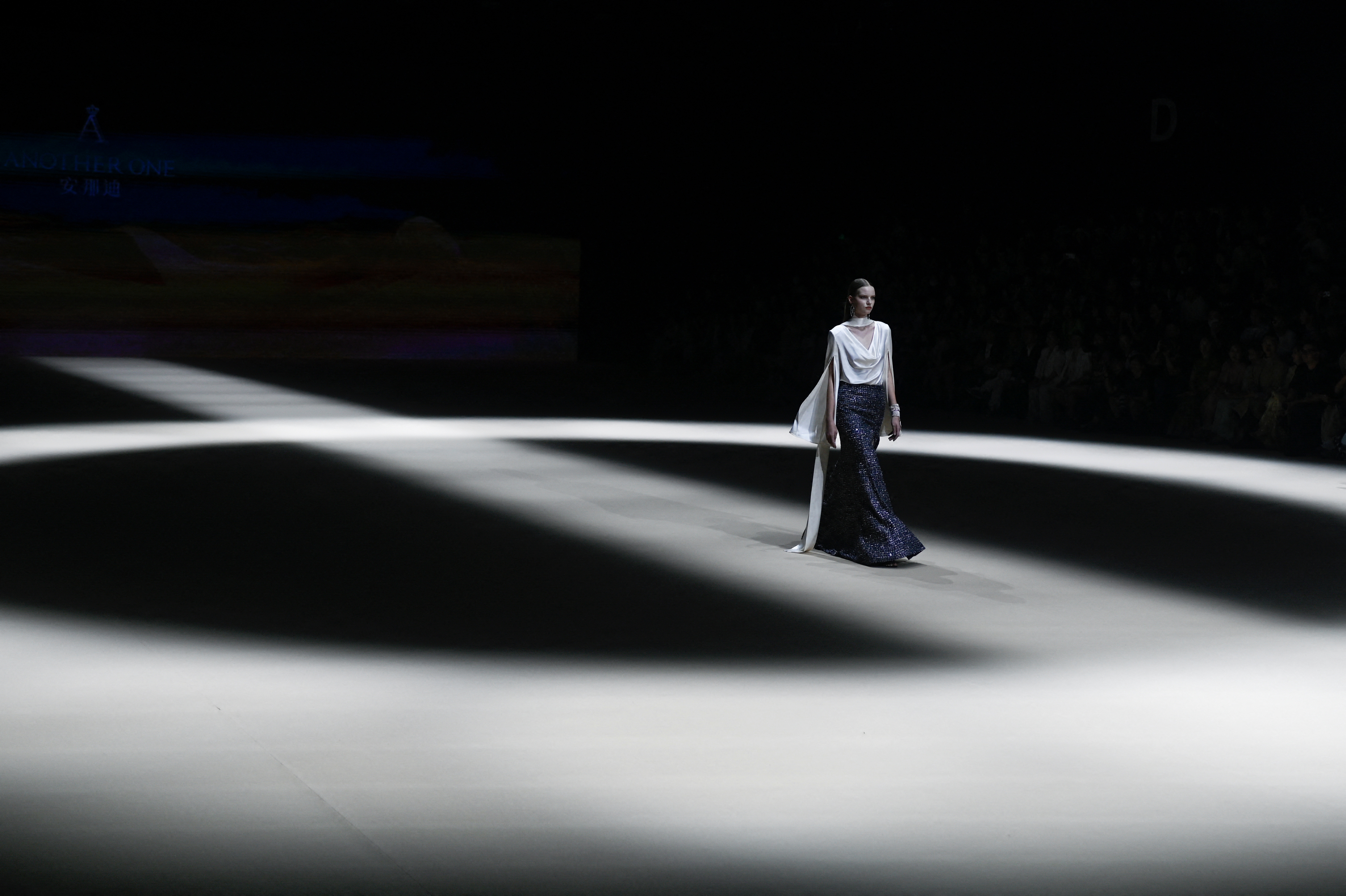 A model displays a creation from the Another One collection by Xiaoming Deng during the China Fashion week in Beijing on September 10, 2024. (Photo by Wang Zhao/AFP Photo)
