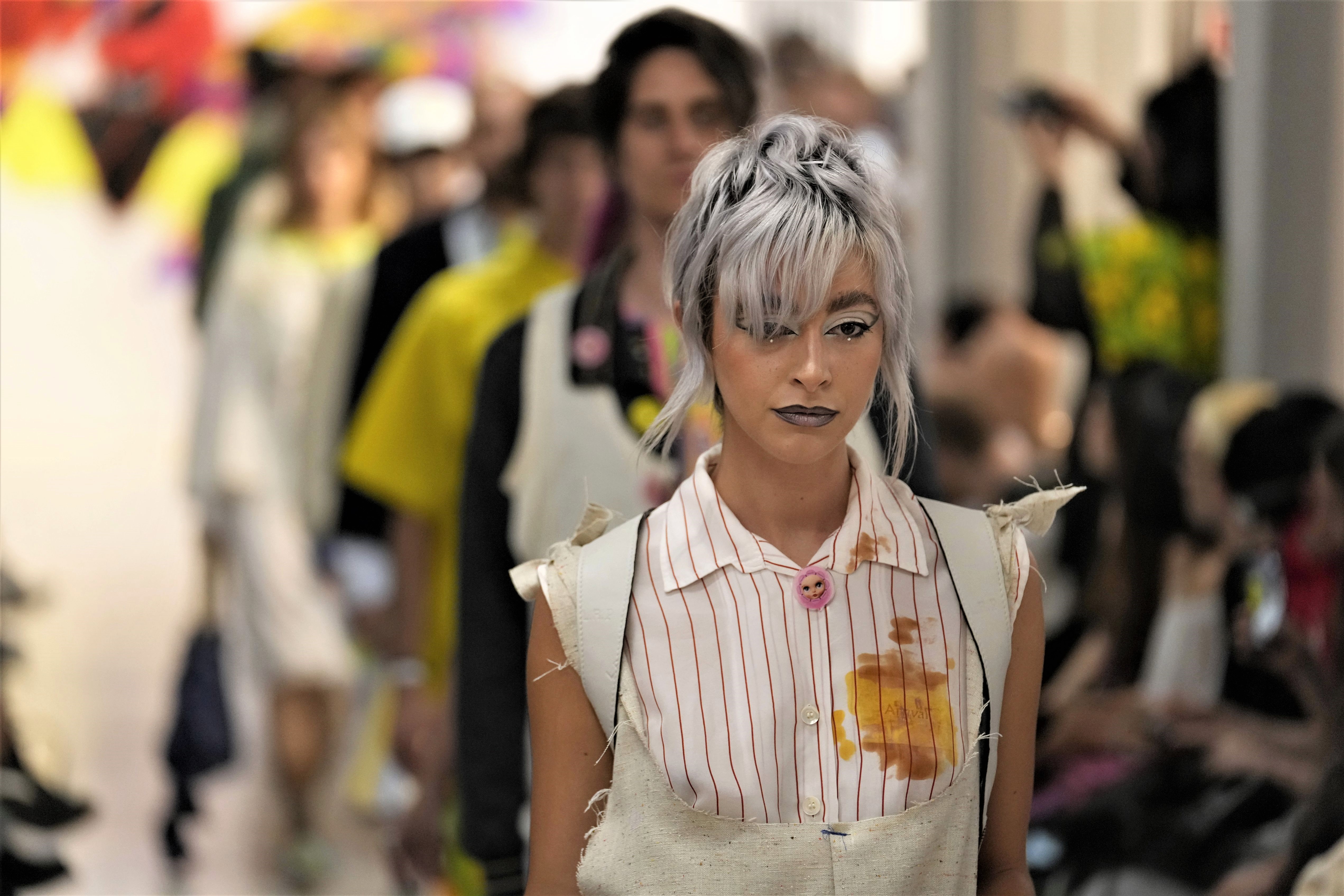 Models wear creations as part of the Simon Cracker men's and women's Spring Summer 2024 collection presented in Milan, Italy, Sunday, June 18, 2023. (Photo by Luca Bruno/AP Photo)