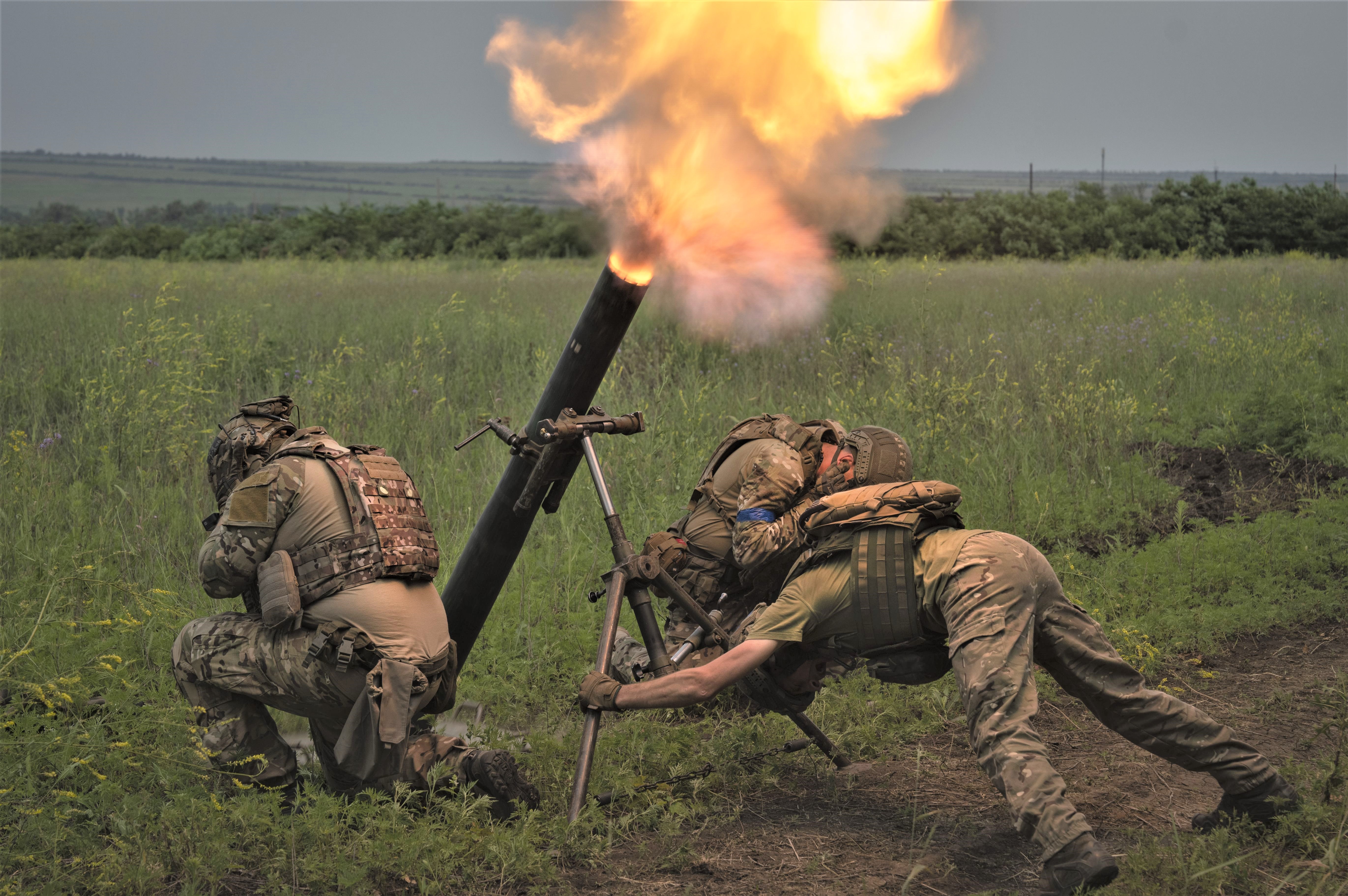 Ukrainian soldiers fire toward Russian position on the frontline in Zaporizhzhia region, Ukraine, Saturday, June 24, 2023. (Photo by Efrem Lukatsky/AP Photo)