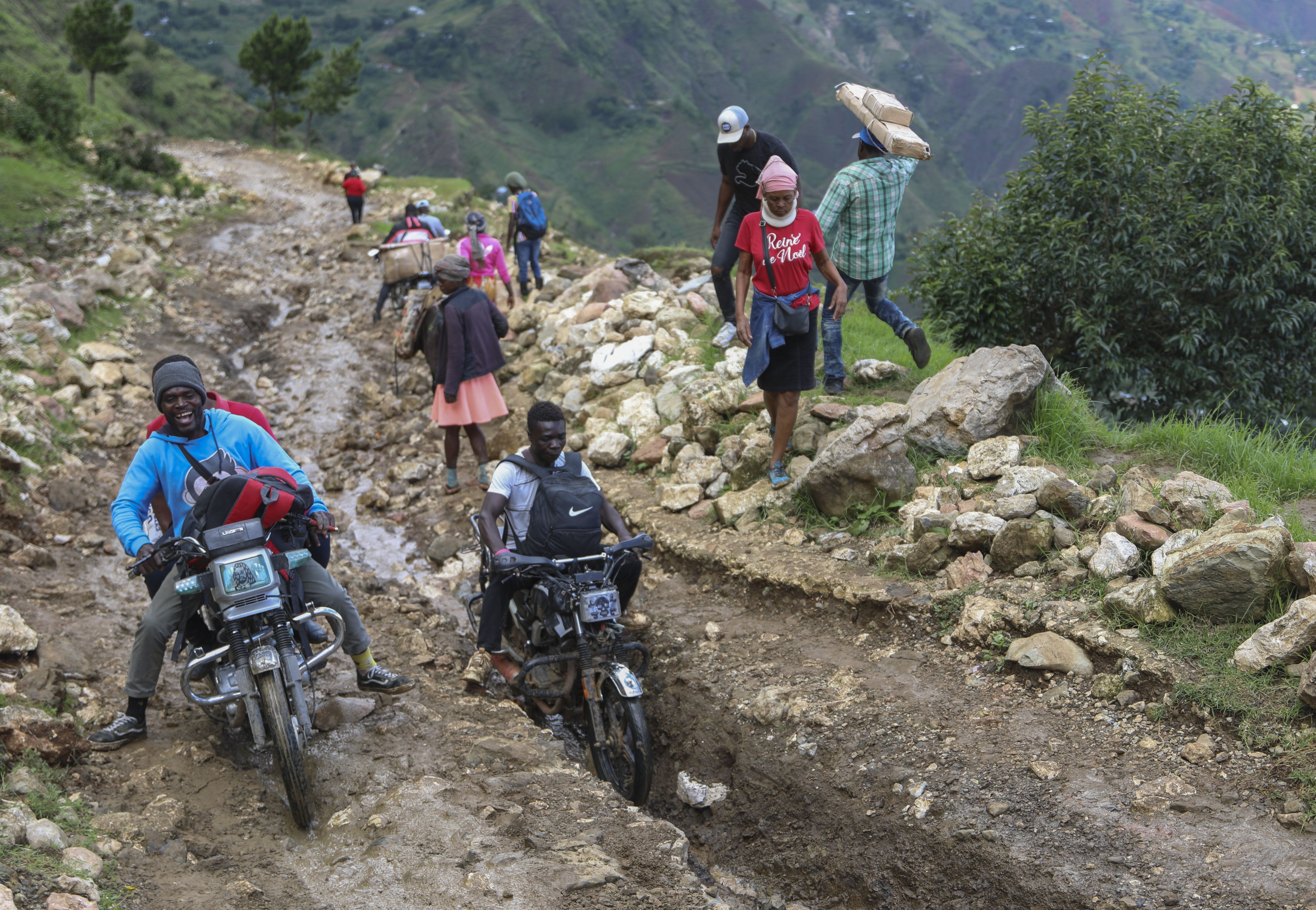 People traverse mountainous roads as they avoid gang violence in the Kenscoff neighborhood of Port-au-Prince, Haiti, Tuesday, September 10, 2024. (Photo by Odelyn Joseph/AP Photo)