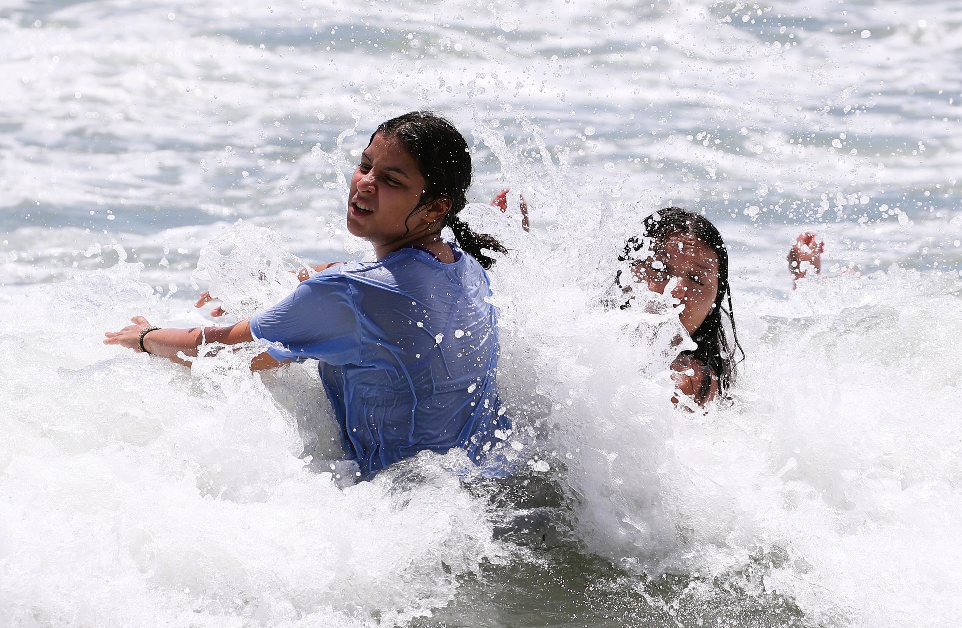 On July 28, 2024 foreign tourists at Haeundae Beach in Busan were taking a break from the heat while enjoying the waves. (Photo by Kim Dong-hwan)