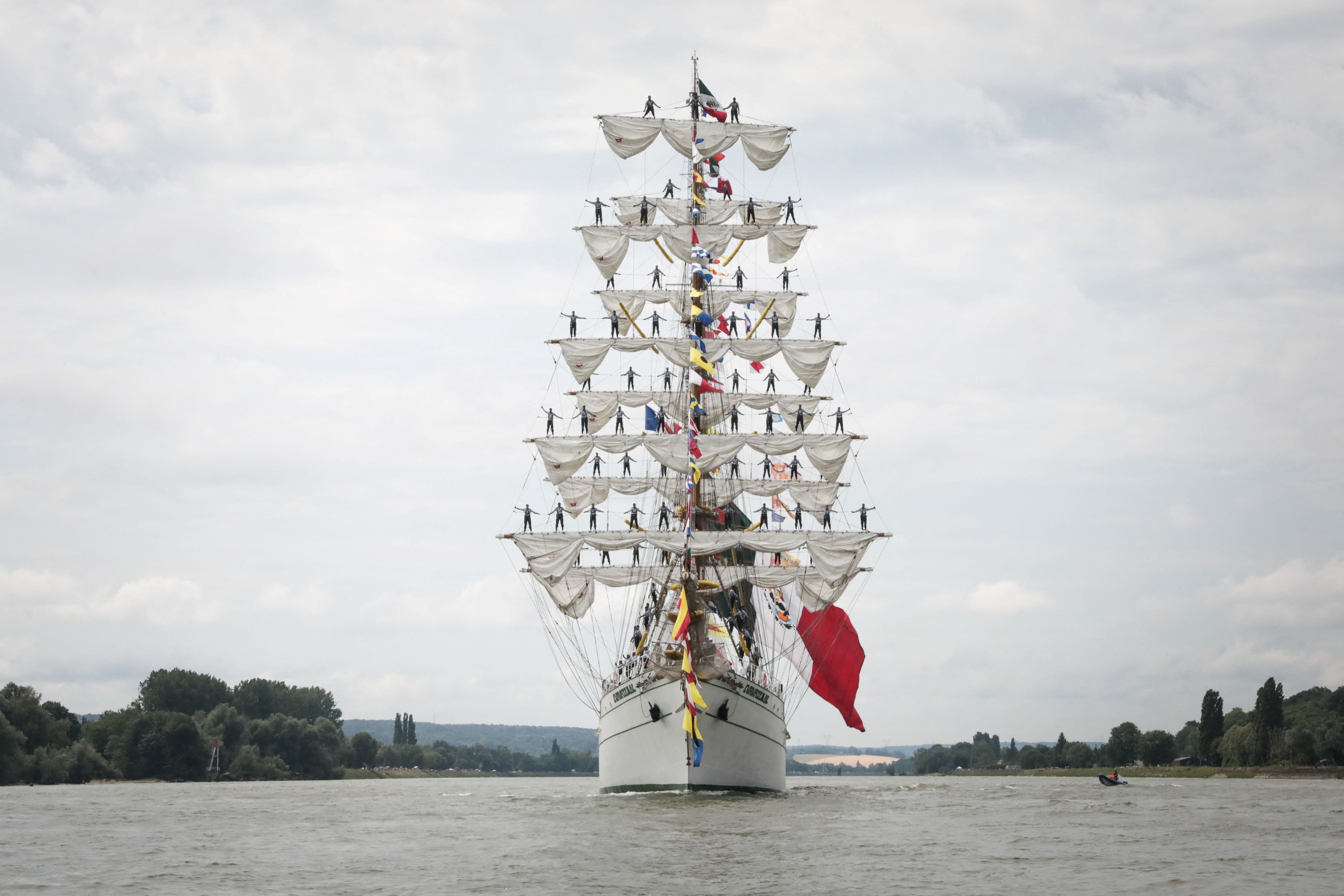The Cuauhtemoc ship sails during the Grand Parade, as the ships sail from Rouen to the ocean through the Seine river, during the Armada of old vessels and tall ships in Rouen, on June 18, 2023. (Photo by Lou Benoist/AFP Photo)
