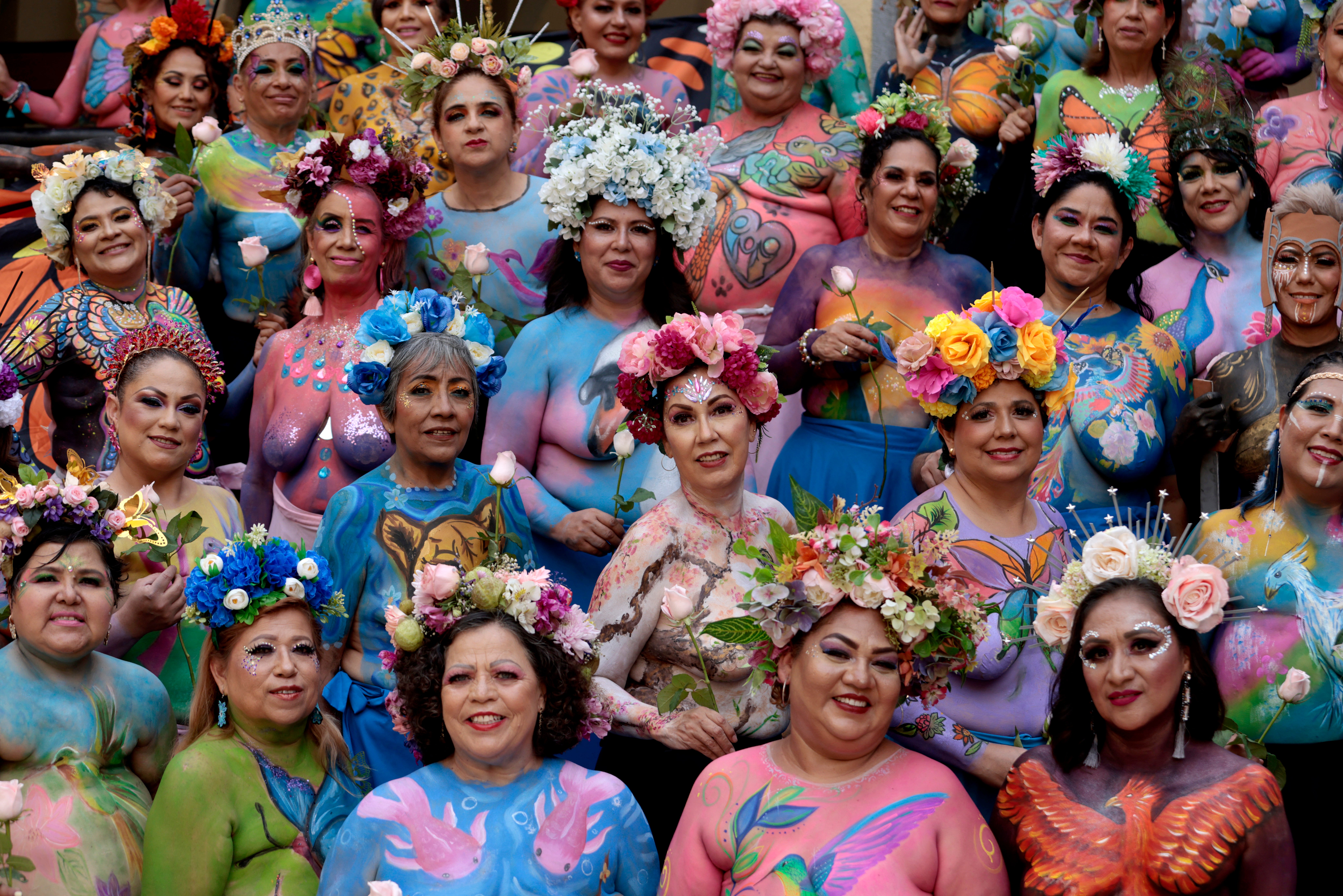 Breast cancer survivors pose for a photograph during the ninth edition of the project “Una pincelada por la vida” (A brushstroke for life), in Zapopan, Jalisco state Mexico, on September 8, 2024. “Una pincelada por la vida” is an altruistic project involving more than 100 women survivors with the aim to raise awareness of breast cancer in the world. (Photo by Ulises Ruiz/AFP Photo)