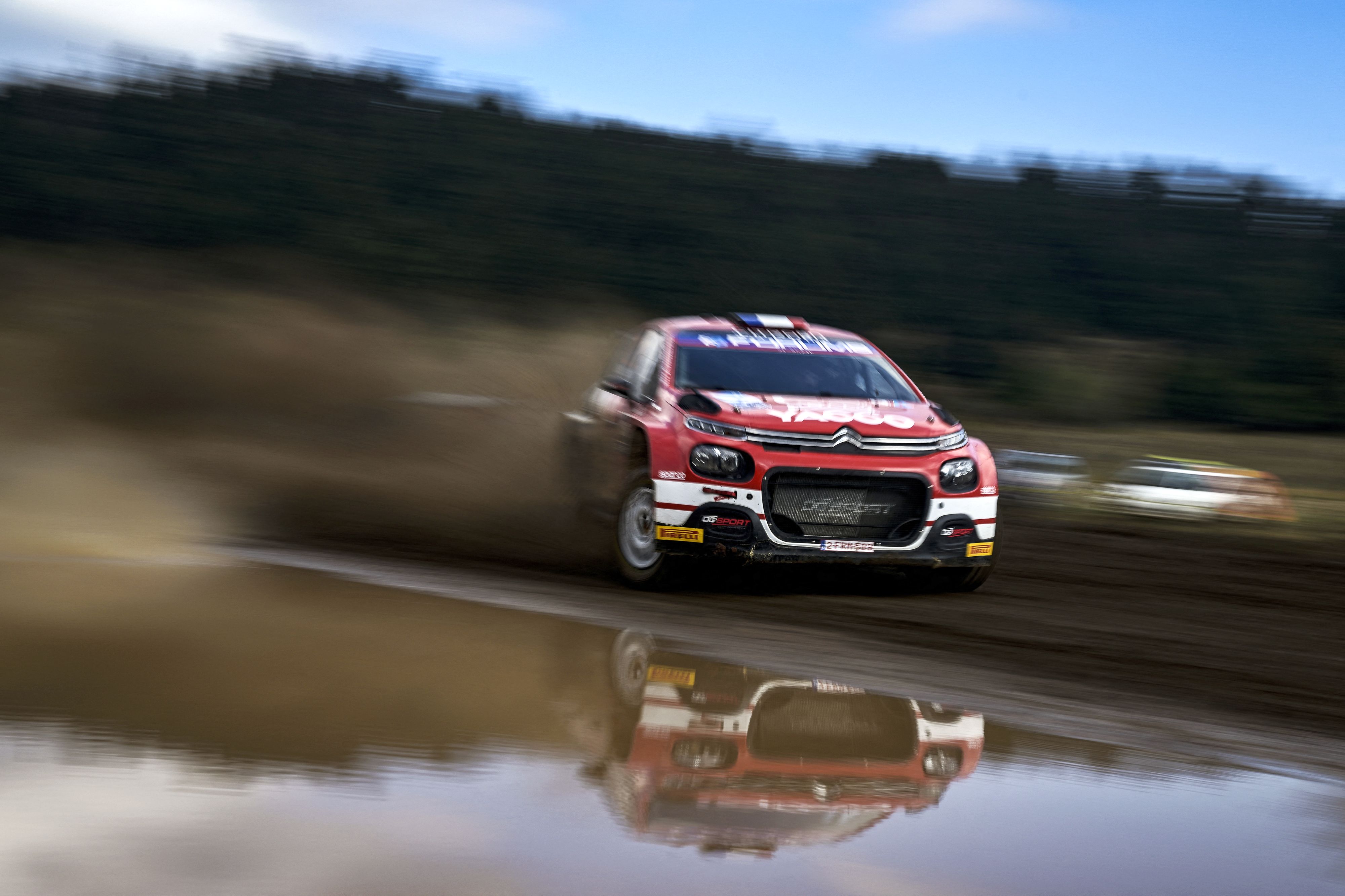France's Yohan Rossel with his co-driver Florian Barral drive their Citroen C3 RC2 Rally2 at the special stage Eleftherochori during the Acropolis Rally in Eleftherochori on September 08, 2024. (Photo by Aris Messinis/AFP Photo)