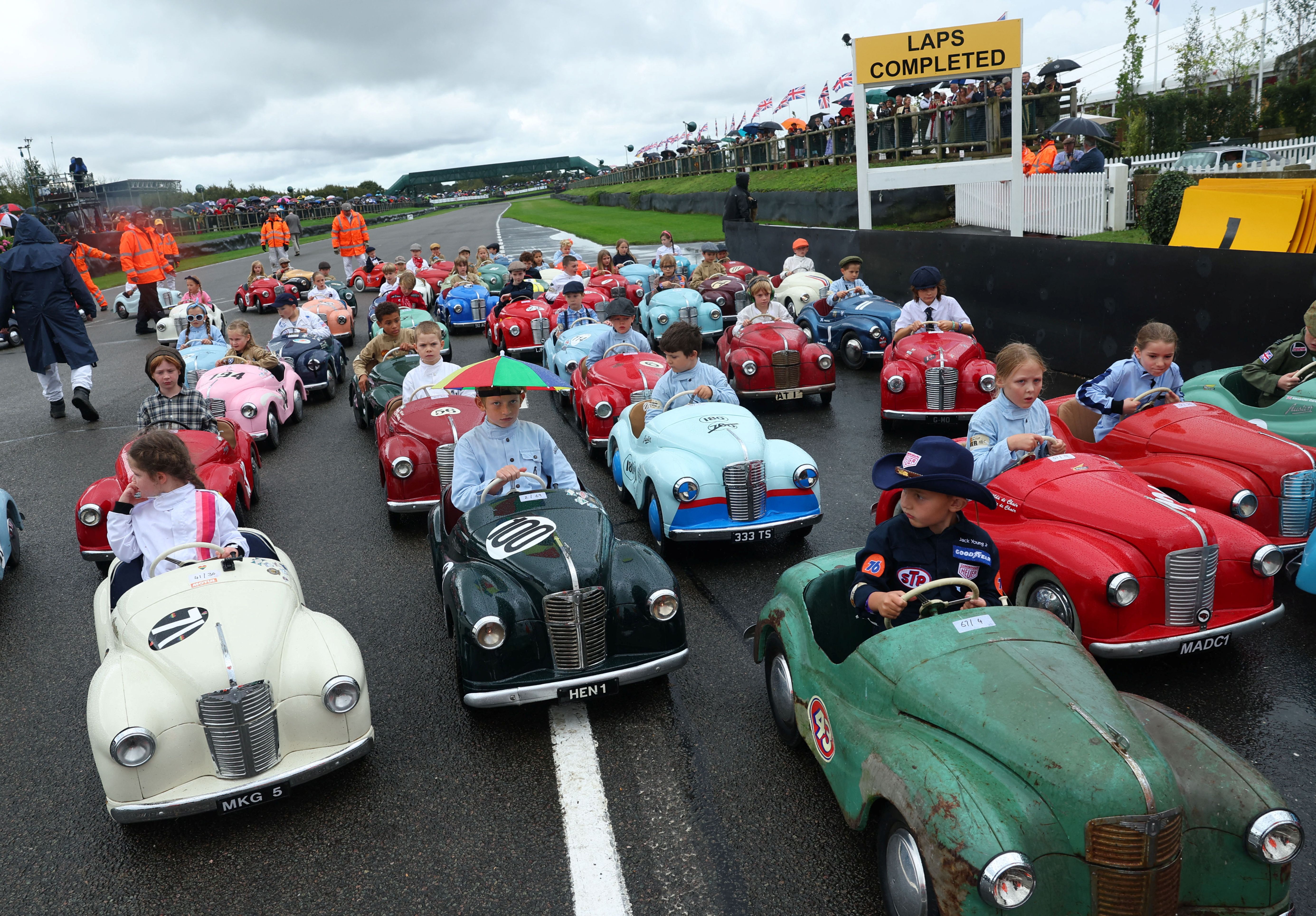 Children take part in the Settrington Cup Pedal Car Race as motoring enthusiasts attend the Goodwood Revival, a three-day historic car racing festival in Goodwood, near Chichester, southern Britain on September 8, 2024. (Photo by Toby Melville/Reuters)