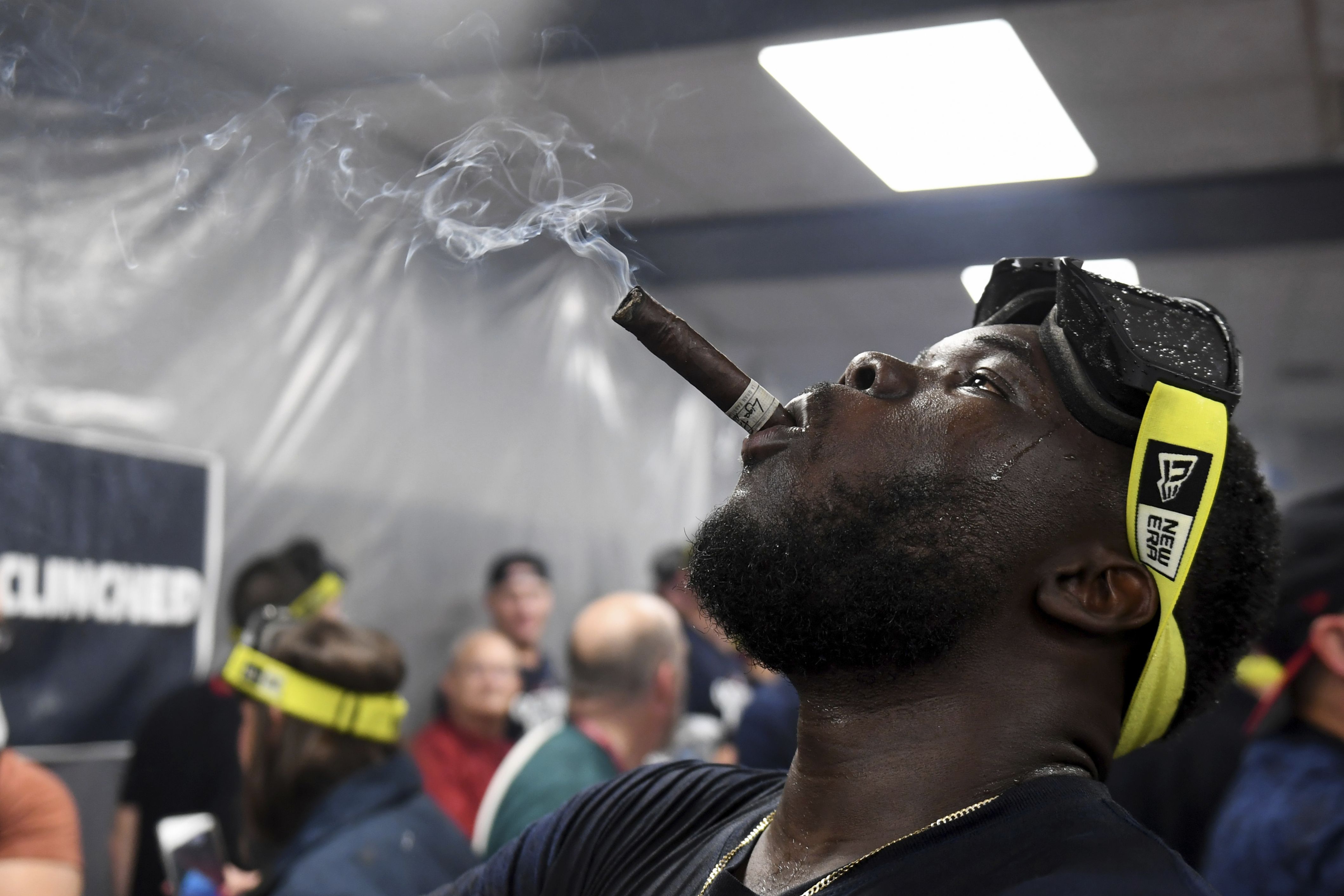 Cleveland Guardians' Jhonkensy Noel celebrates in the clubhouse after they defeated the Minnesota Twins to clinch a baseball playoff berth, Thursday, September 19, 2024, in Cleveland. (Photo by Nick Cammett/AP Photo)