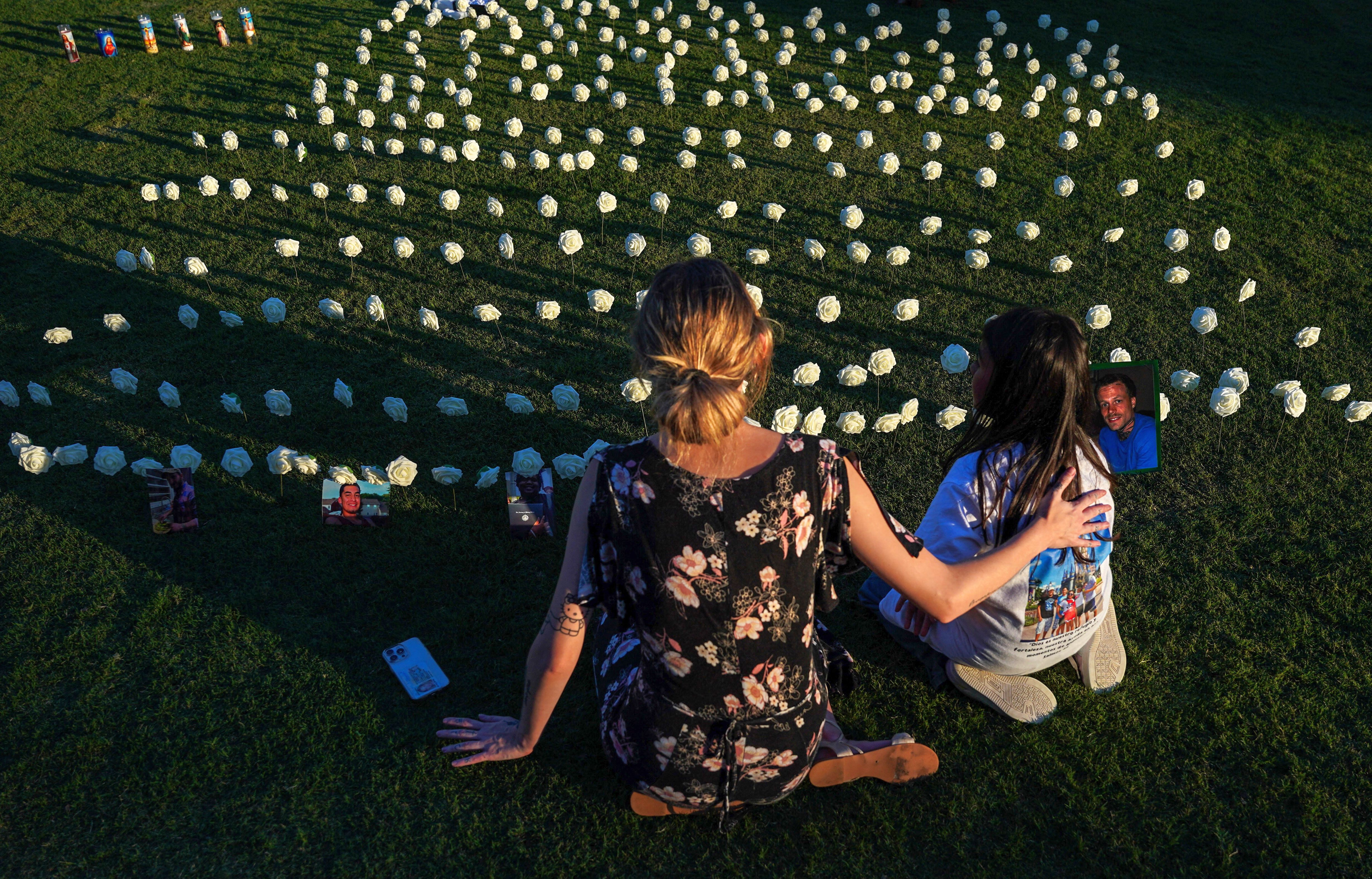 People gather to honor victims of gun related deaths at Public Square Park in Nashville, Tennessee, on September 20, 2024. The vigil is organized by the Tennessee Hispanic Action Network in honor of victims of gun violence, including 18-year-old Yasser Paz, who was shot and killed outside of a nightclub earlier this month. (Photo by Seth Herald/AFP Photo)