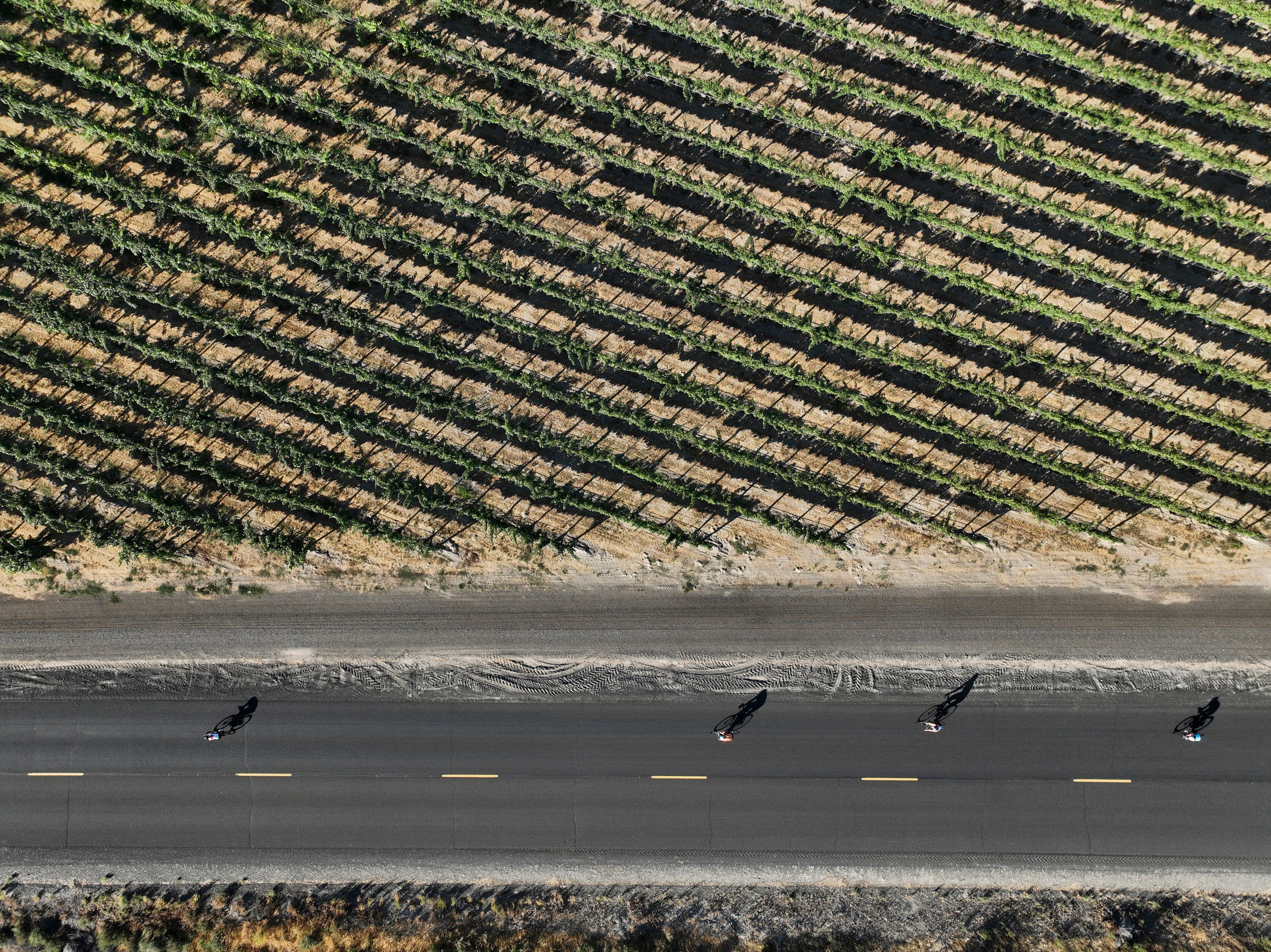 An aerial view as age group athletes compete on the bike course at 2024 IRONMAN 70.3 Washington Tri-Cities on September 22, 2024 in Richland, Washington. (Photo by Patrick McDermott/Getty Images for IRONMAN)