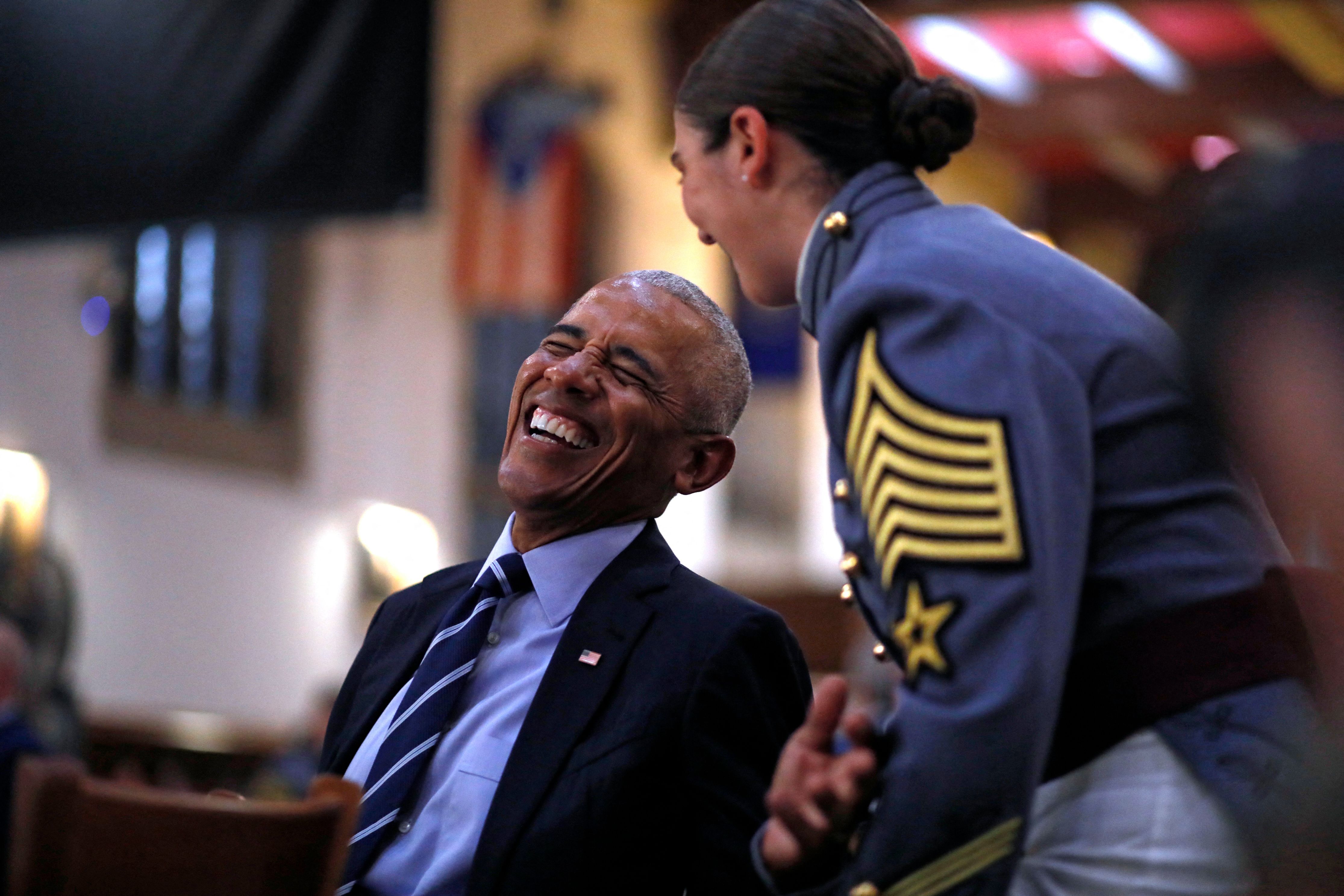 Former US President Barack Obama attends a reception before receiving the 2024 Sylvanus Thayer Award from the US Military Academy at West Point, New York, on September 19, 2024. (Photo by Kena Betancur/AFP Photo)