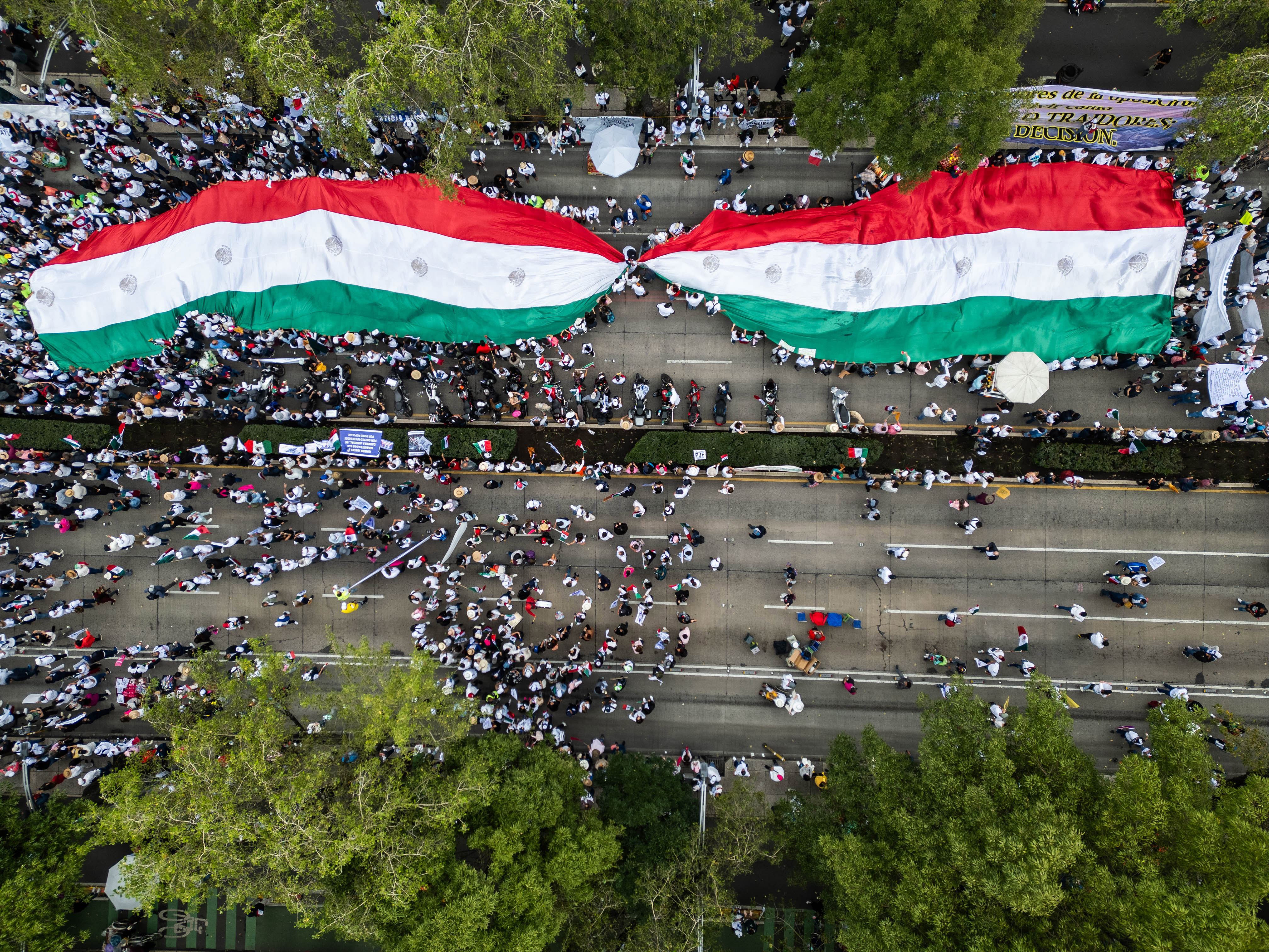 An aerial view of a rally called “In defense of the Republic and Democracy” against the Mexico's controversial judicial reform, at Reforma avenue, in Mexico City, Mexico on September 08, 2024. (Photo by Daniel Cardenas/Anadolu via Getty Images)
