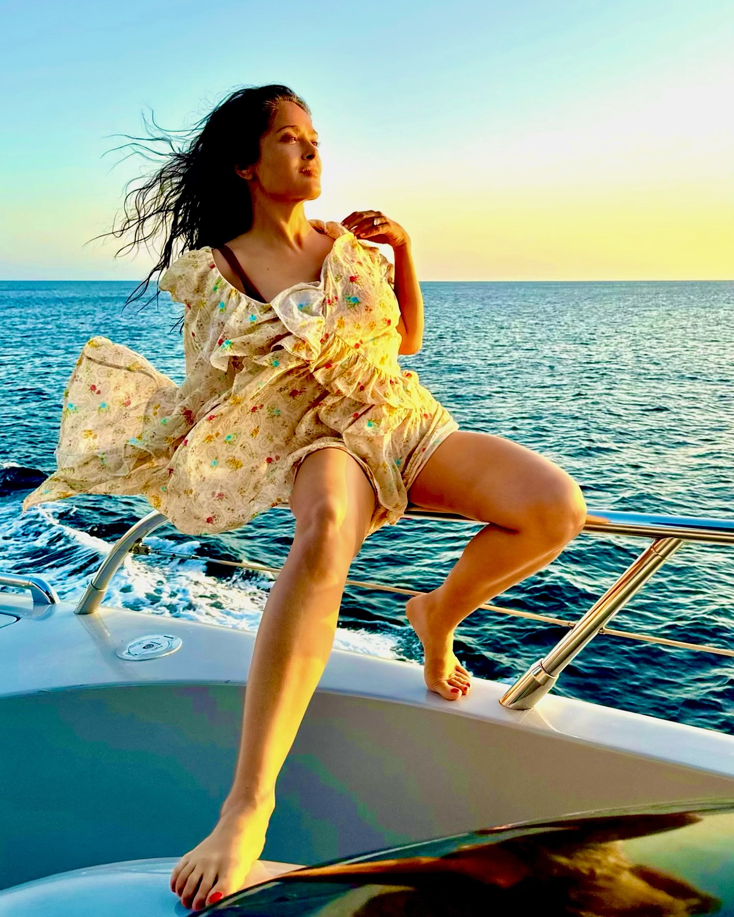 Actress and film producer Salma Hayek goes for a boat ride in the second decade of September 2024. (Photo by salmahayek/Instagram)
