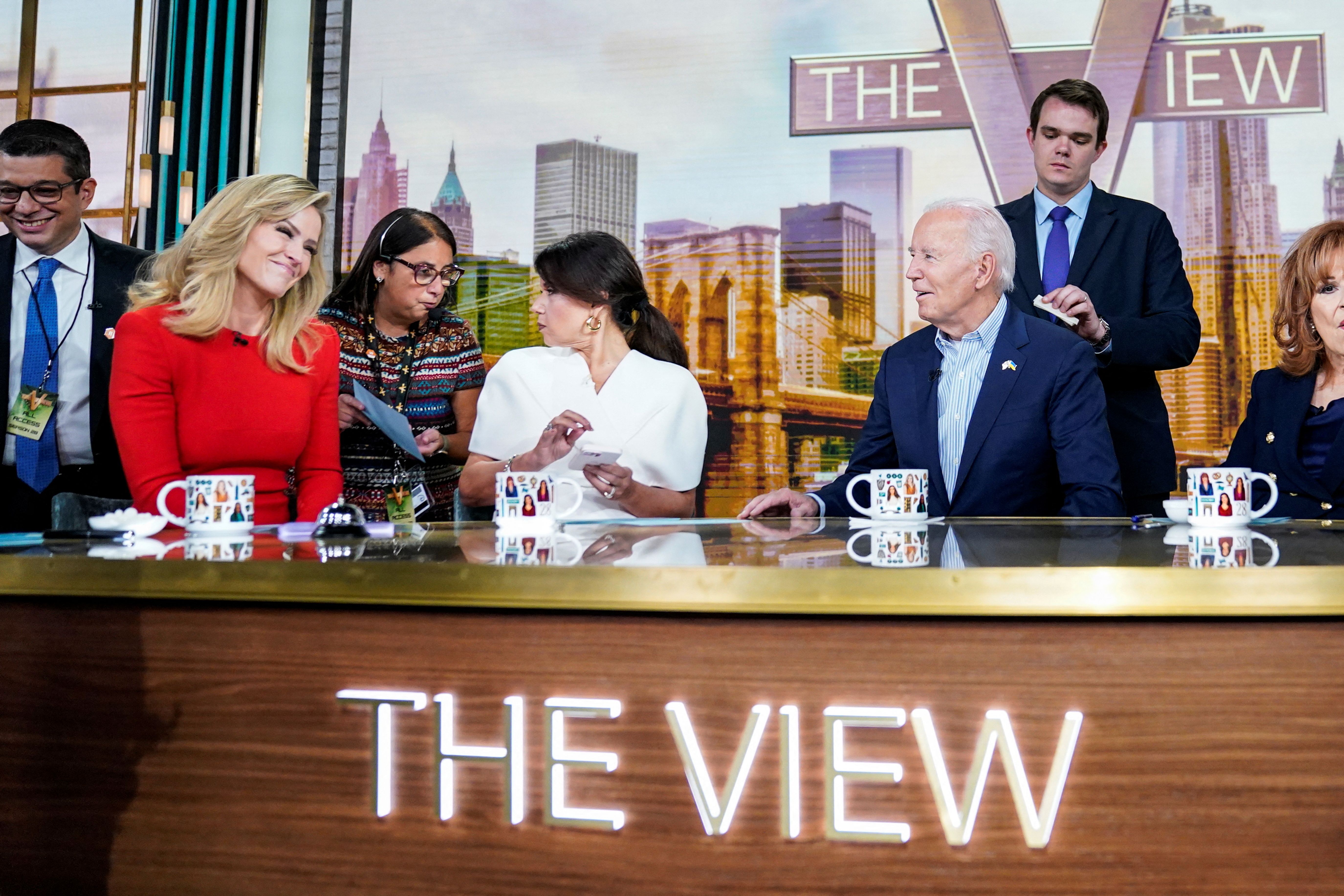 U.S. President Joe Biden looks on during a commercial break of "The View" in New York City on September 25, 2024. (Photo by /Elizabeth Frantz/Reuters)