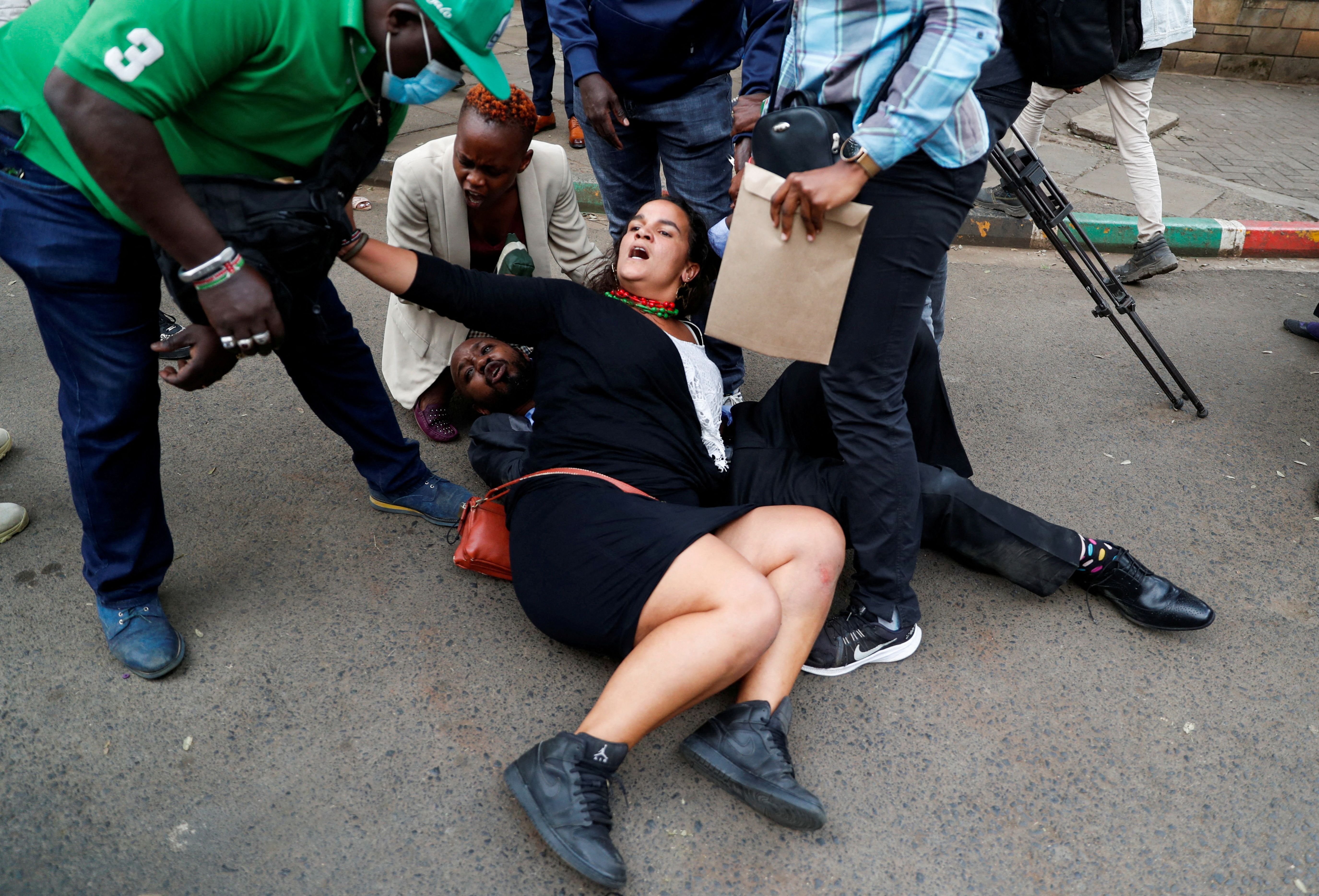 Plainclothes police officers attempt to detain Kenyan activist Boniface Mwangi, along with other social justice activists, in front of the Office of the President as families of the victims, activists and civil society representatives gather to deliver a list of people who disappeared during demonstrations against the government proposed tax hikes, in Nairobi, Kenya on September 24, 2024. (Photo by Thomas Mukoya/Reuters)