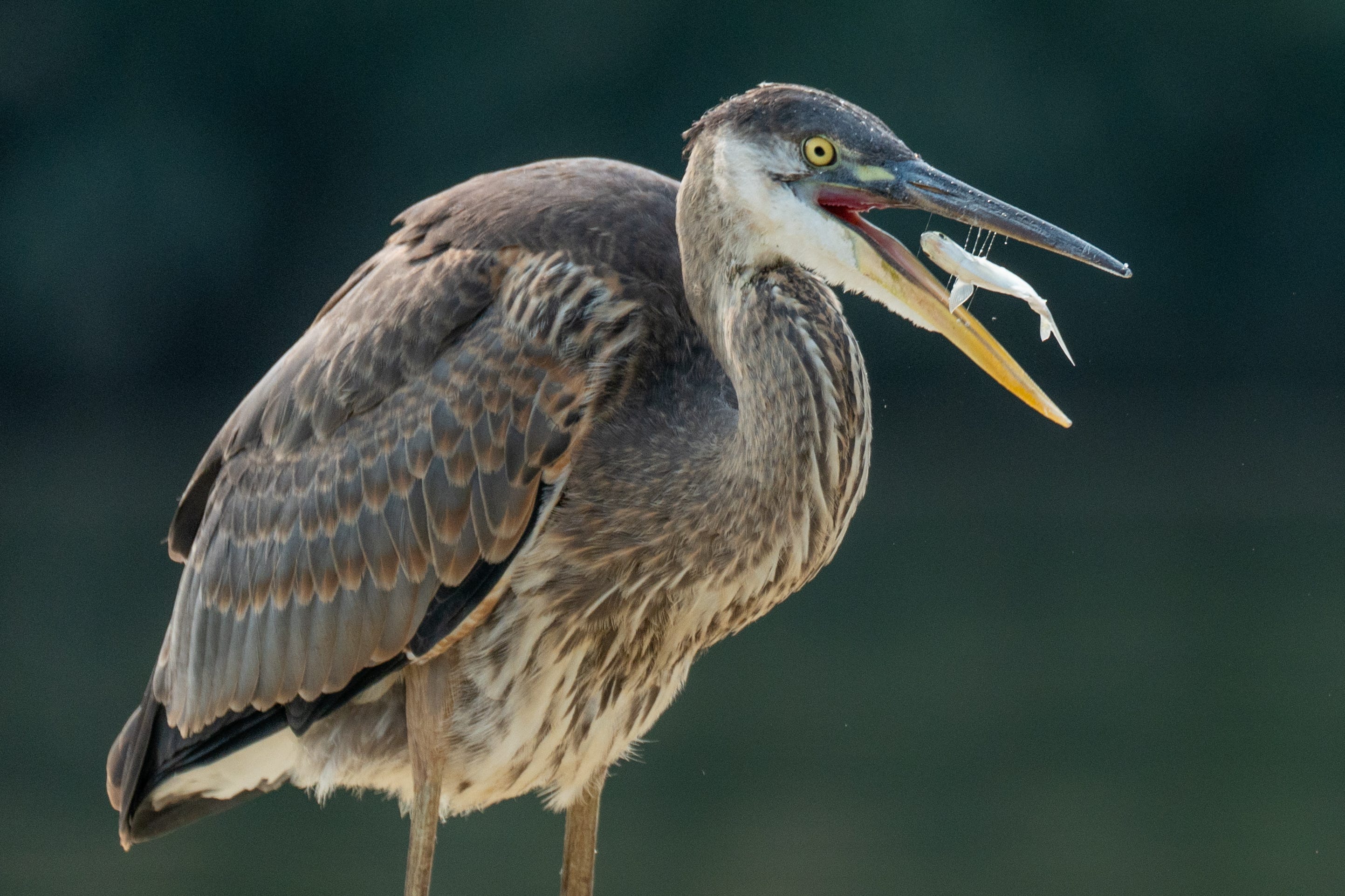 A great blue heron eats a fish at Overpeck County Park in Ridgefield Park, New Jersey on Thursday, September 12, 2024. (Photo by Julian Leshay Guadalupe/NorthJersey.com via USA TODAY Network)