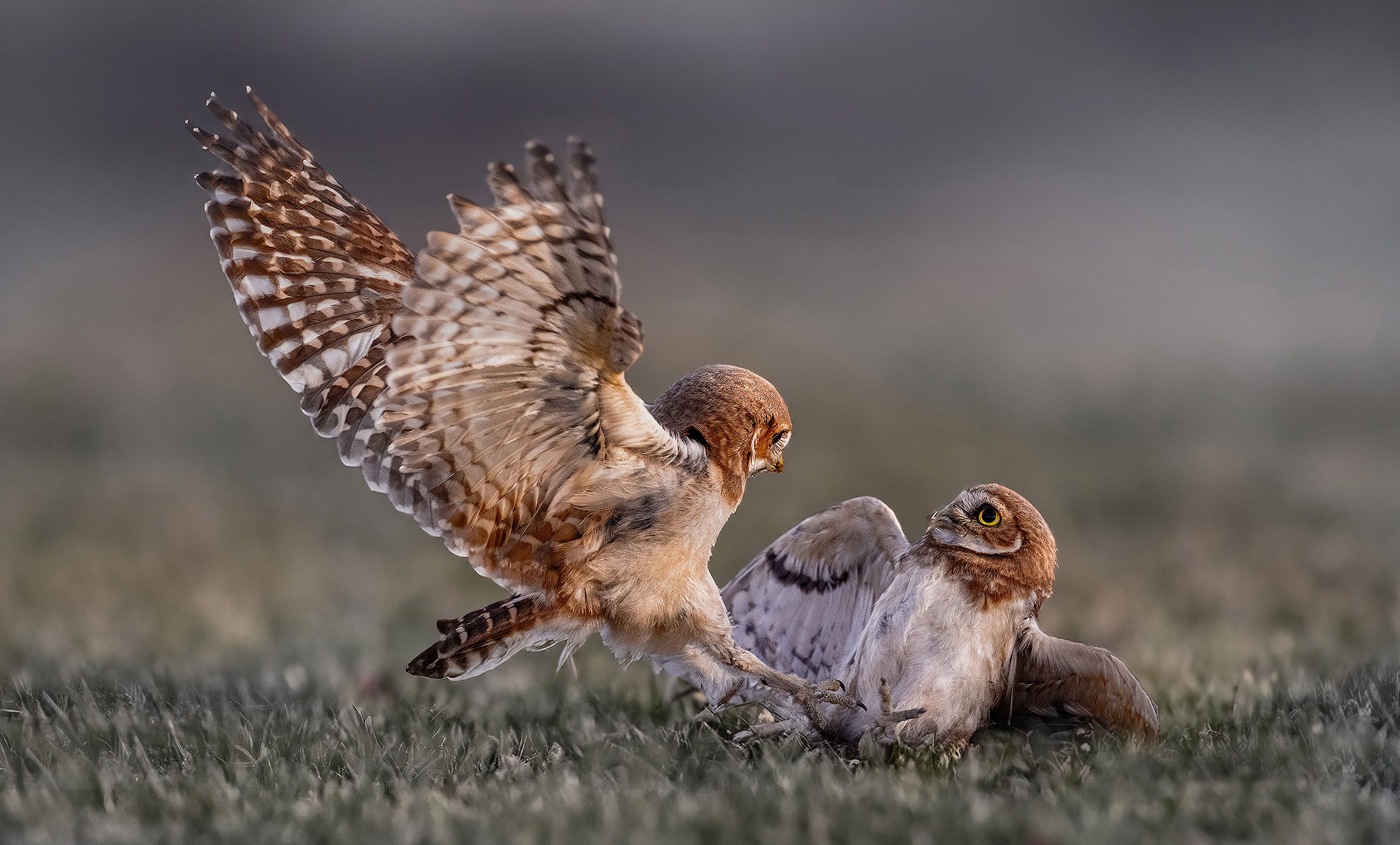 A burrowing owlet pins down its sibling during a squabble near Fontana airport in California in the last decade of September 2024. (Photo by Sarah X./Solent News)