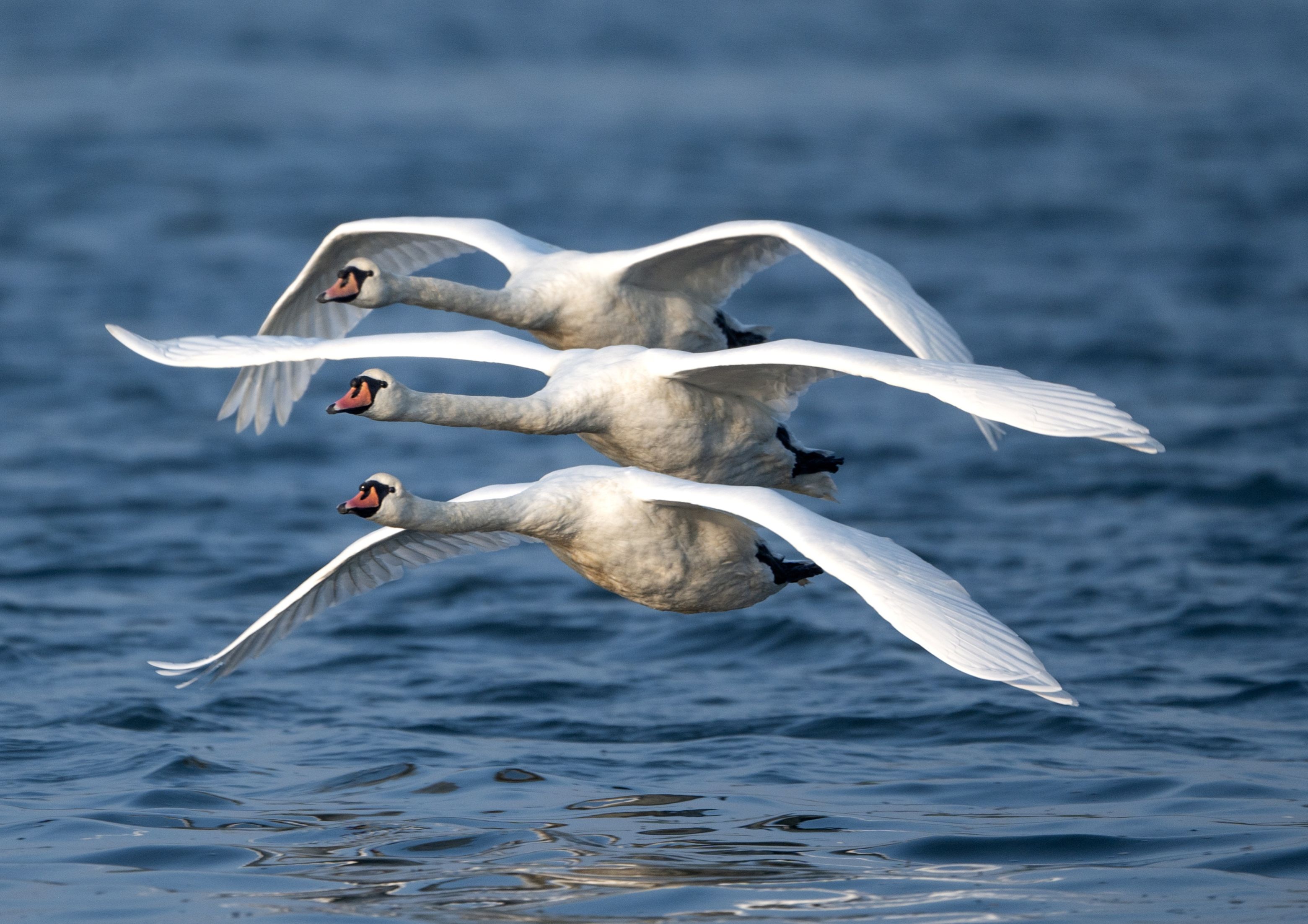 Swans race across Restronguet Creek in southern Cornwall in the last decade of September 2024. (Photo by Alan James/Solent News & Photo Agency)