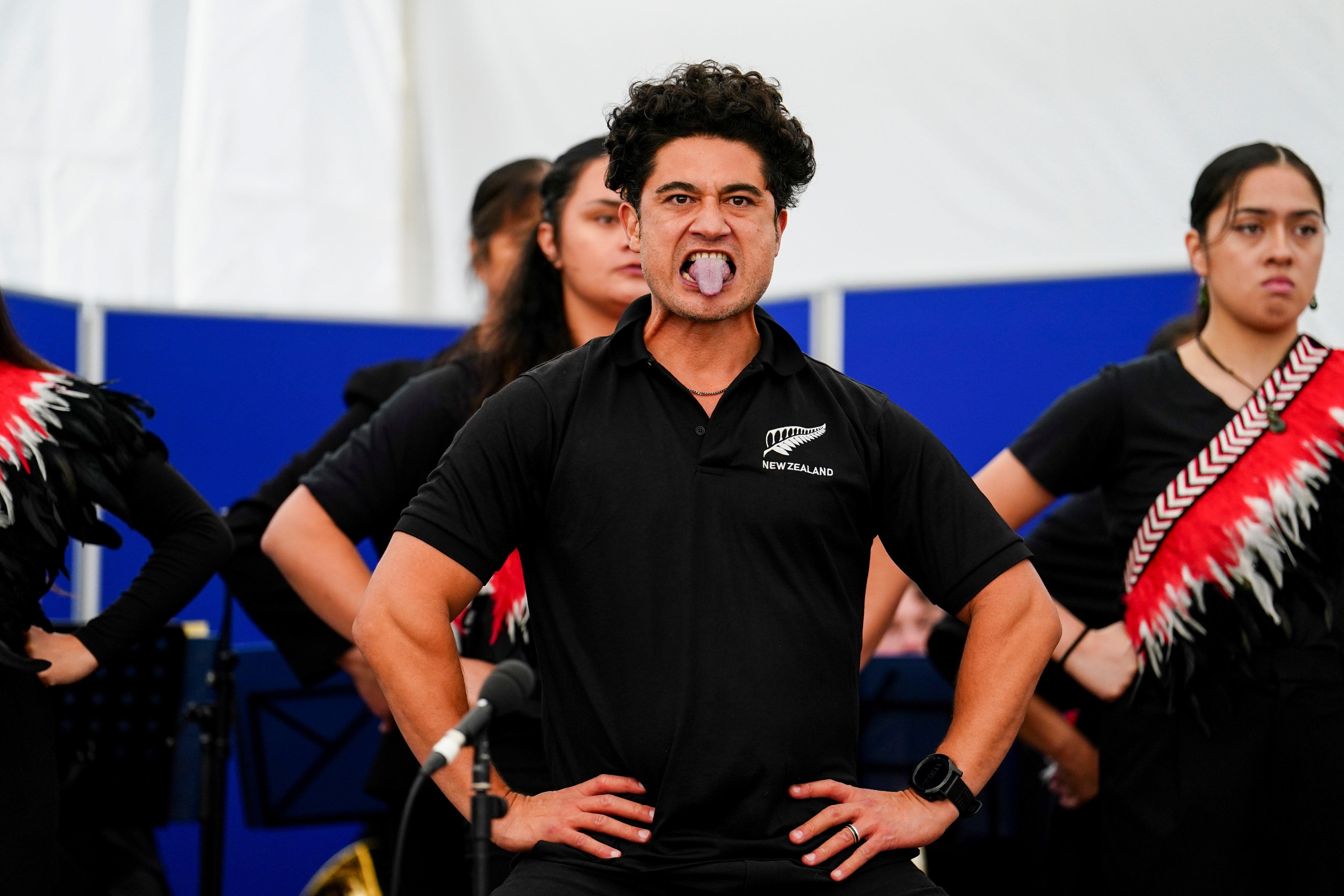 Members of the Maori Choir perform a haka on Wednesday, September 25, 2024 during the unveiling of memorial stone dedicated to Sergeant Matt Ratana at Croydon Custody Centre, south London, where the New Zealand born British police officer was shot and killed on 25th September 2020. (Photo by Jordan Pettitt/PA Images via Getty Images)