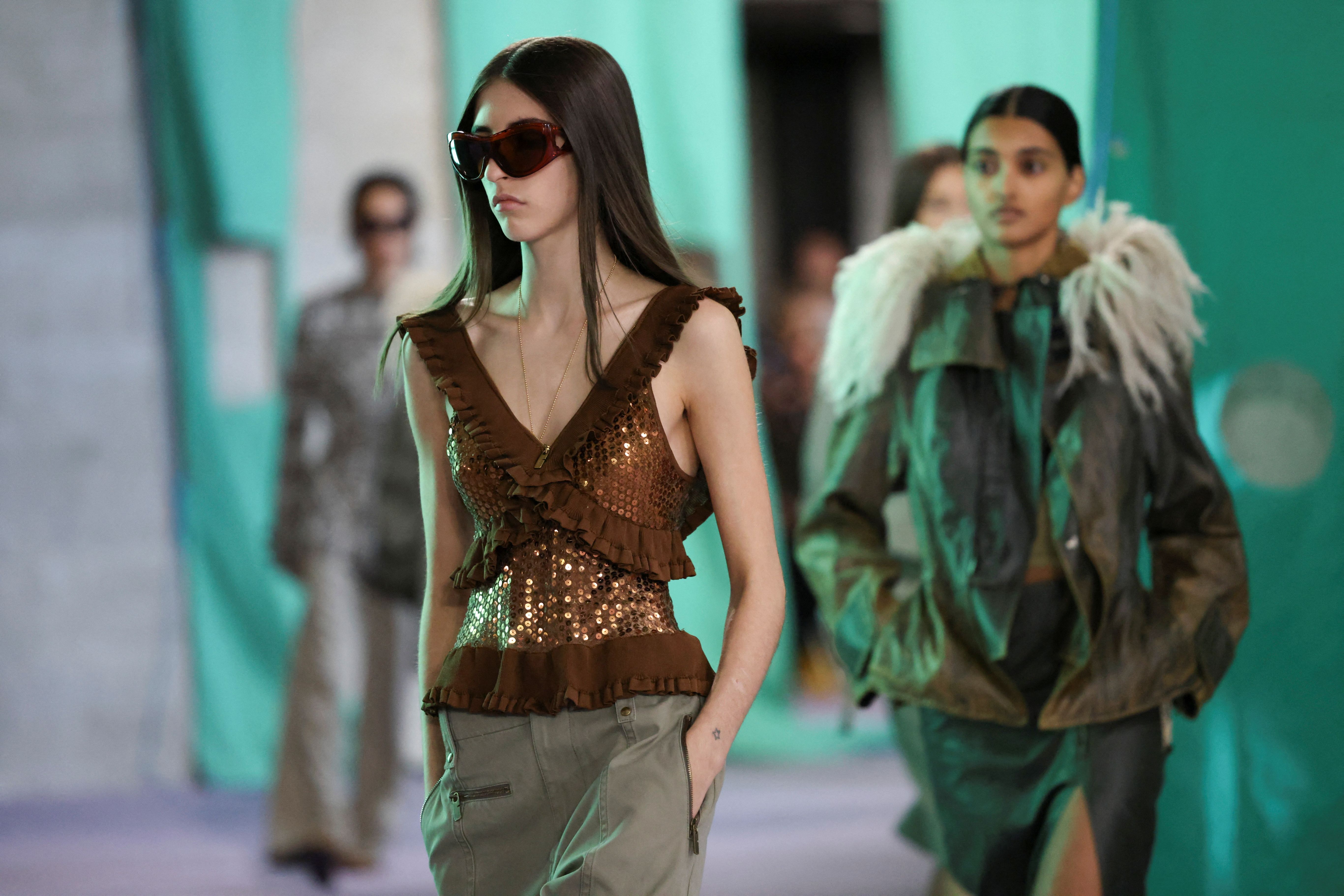 Models present creations at the Burberry catwalk show during London Fashion Week in London, Britain, on September 16, 2024. (Photo by Hollie Adams/Reuters)