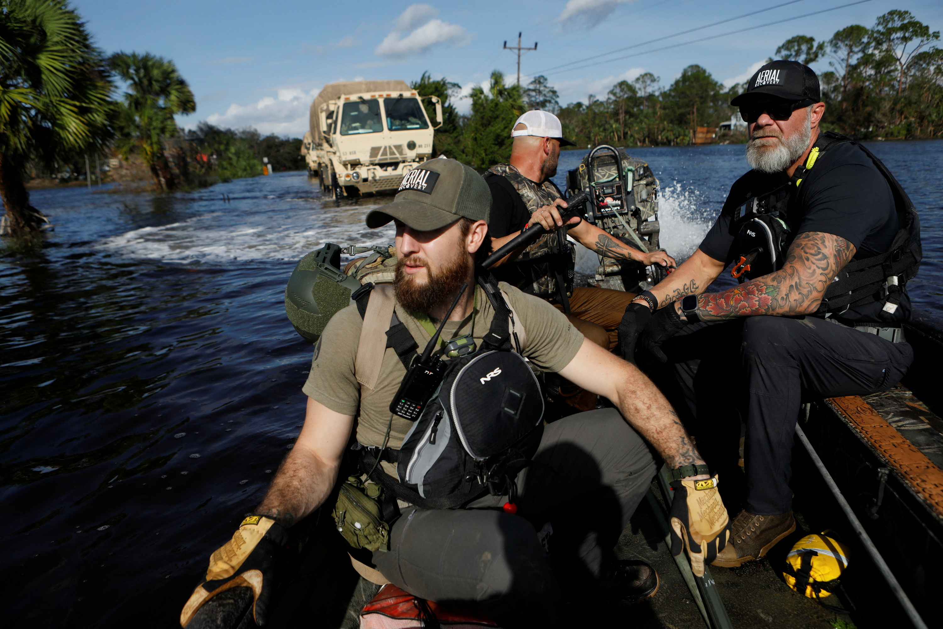 Members of Aerial Recovery search for stranded residents after Hurricane Helene made landfall overnight, in Steinhatchee, Florida on September 27, 2024. (Photo by Octavio Jones/Reuters)