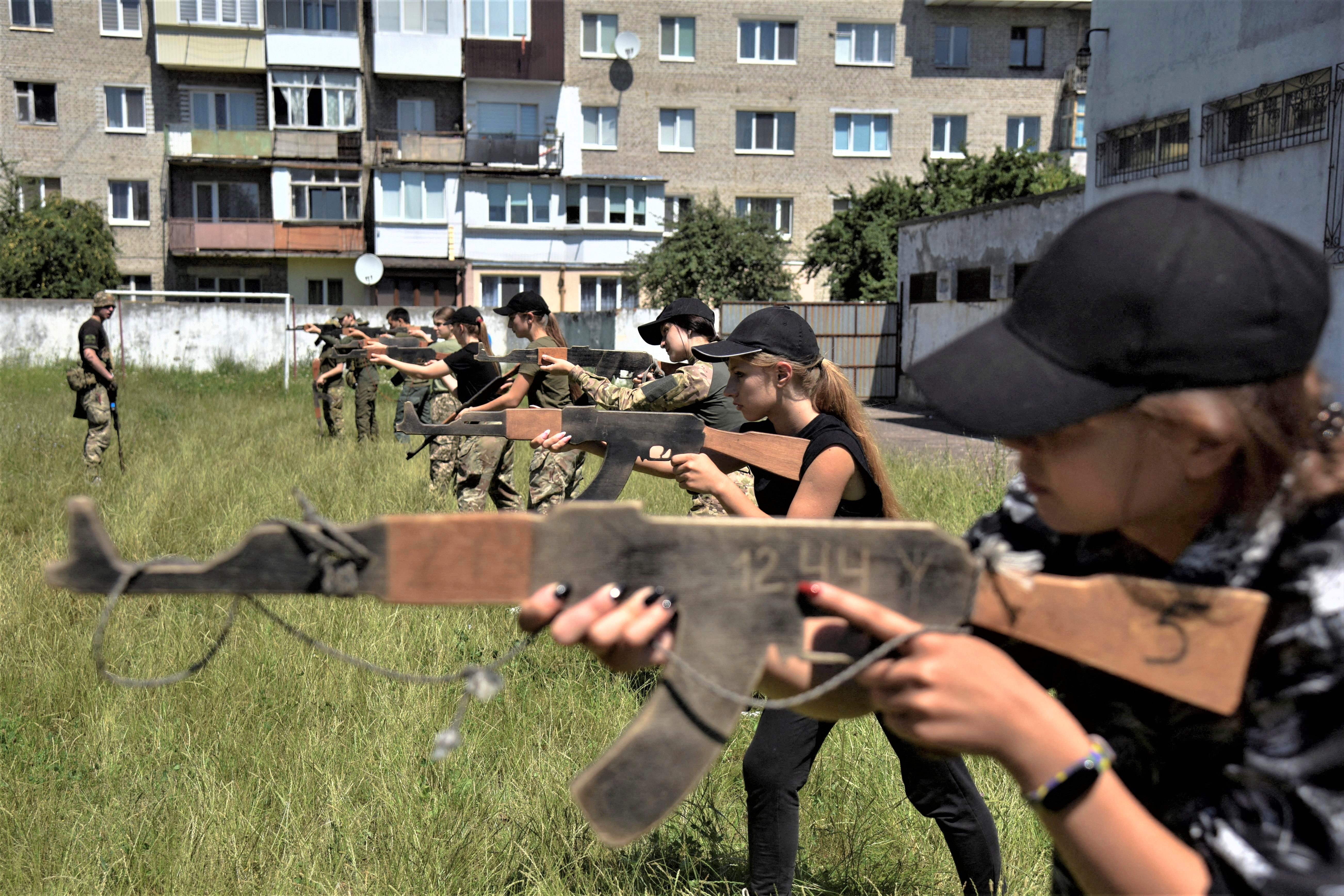Teenagers attend a military training conducted by members of the Ukrainian Volunteer Corps, amid Russia's attack of Ukraine, in Lviv region, Ukraine on July 16, 2023. (Photo by Pavlo Palamarchuk/Reuters)