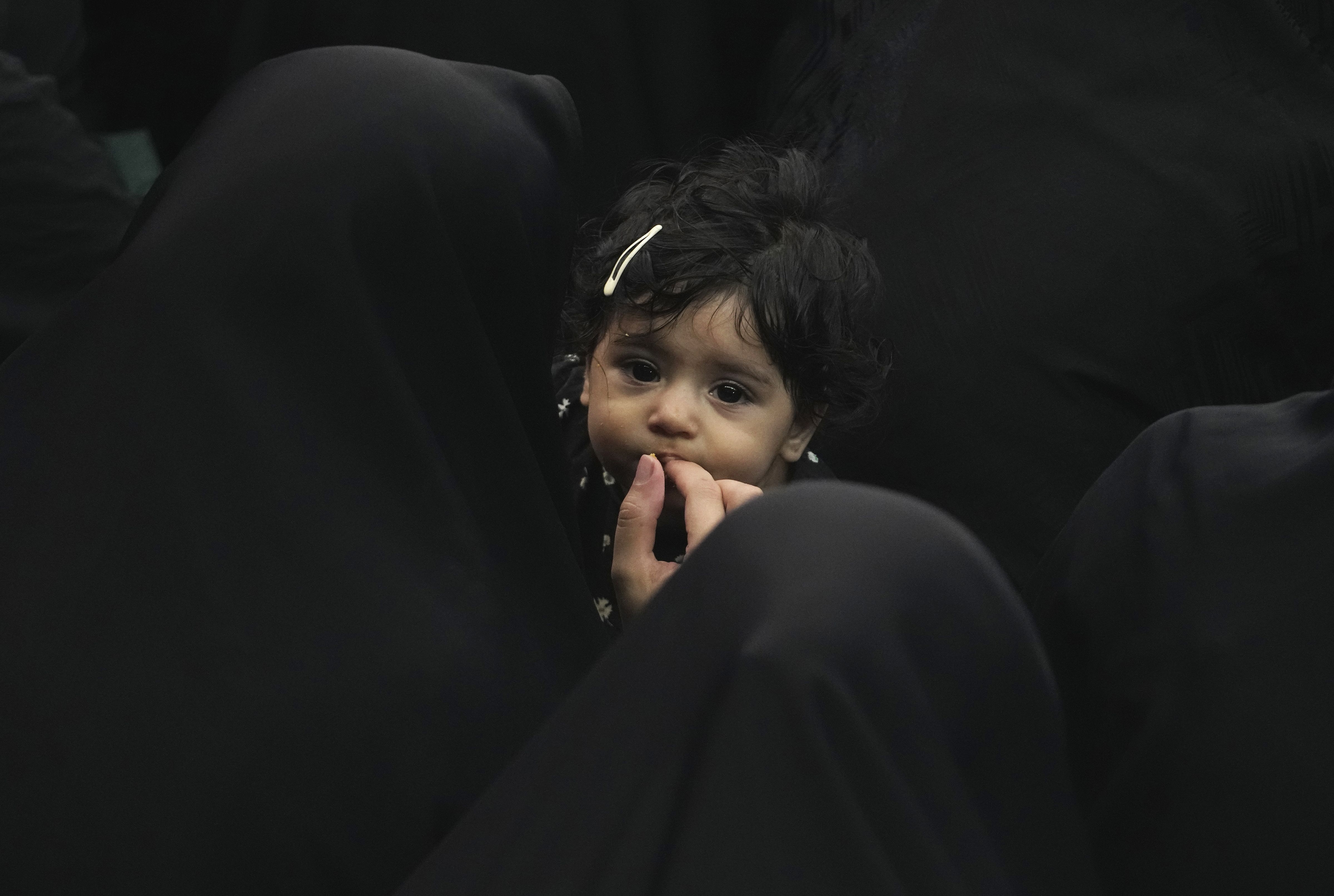 An Iranian Shiite Muslim woman feeds her child as they attend Ashoura mourning ritual, commemorating the 7th century martyrdom of Prophet Muhammad's grandson, Hussein, in the battle of Karbala in present-day Iraq, at the old main bazaar of Tehran, Iran, Tuesday, July 16, 2024. Shiites represent over 10% of the world's 1.8 billion Muslims and view Hussein as the rightful successor to the Prophet Muhammad. (Photo by Vahid Salemi/AP Photo)