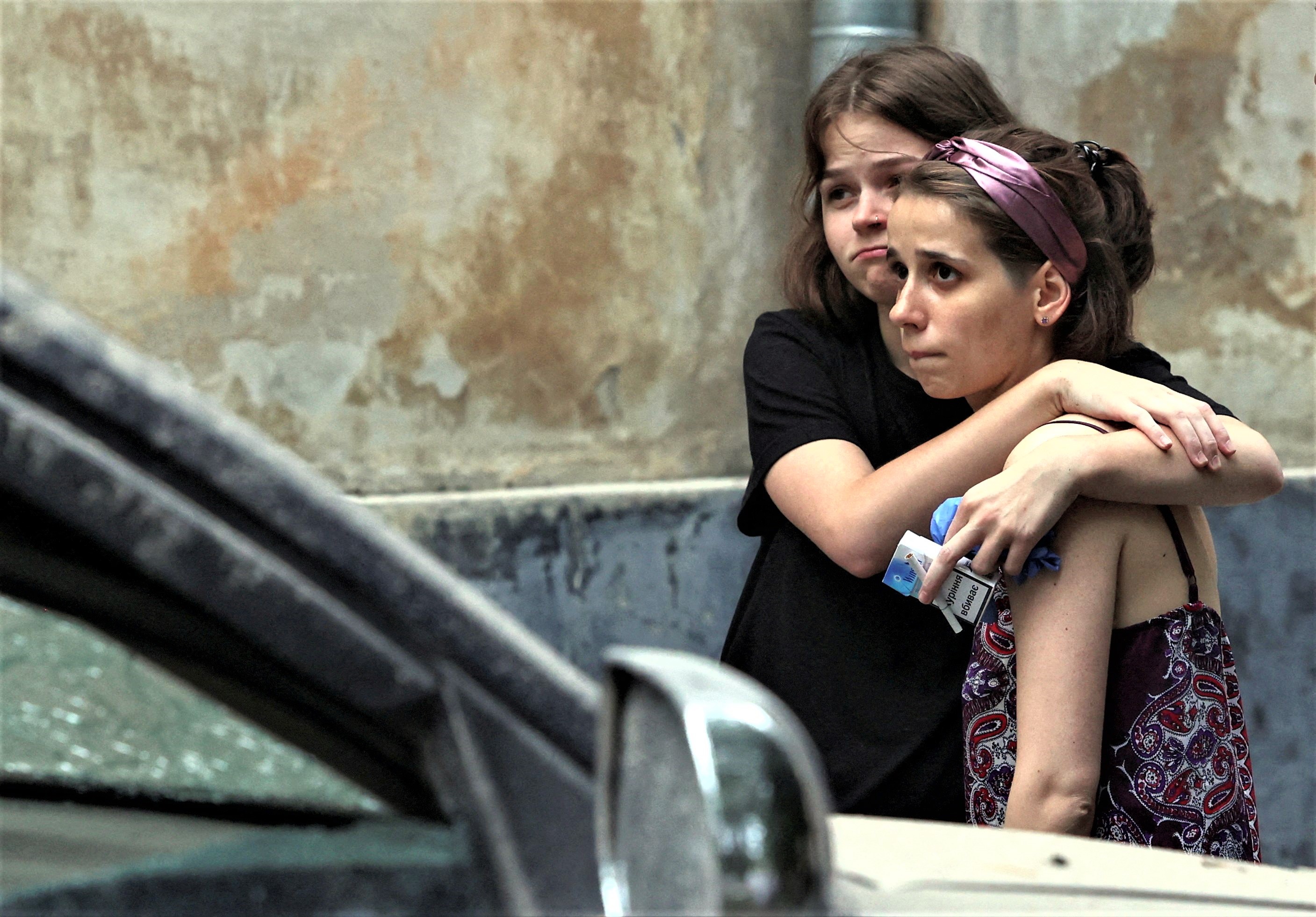 Local residents react at a site of a residential building hit by a Russian missile strike, amid Russia's attack on Ukraine, in Lviv, Ukraine on July 6, 2023. (Photo by Roman Baluk/Reuters)