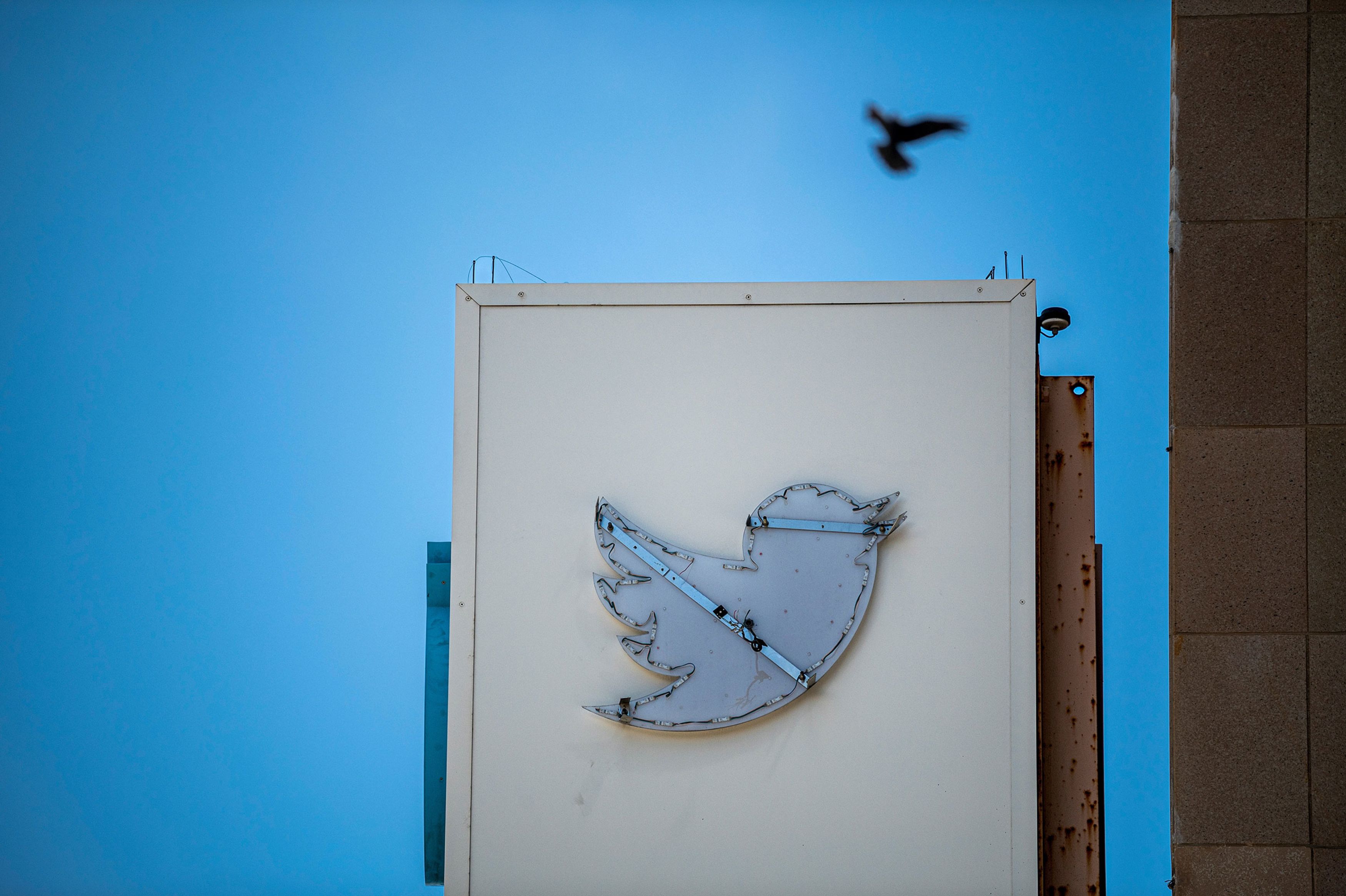 A partially removed sign at Twitter headquarters in San Francisco, California, US, on Wednesday, July 26, 2023. Elon Musk has changed Twitter Inc.'s logo, replacing its signature blue bird with a stylized X as part of the billionaire's vision of transforming the 17-year-old service into an everything app. (Photo by David Paul Morris/Bloomberg via Getty Images)